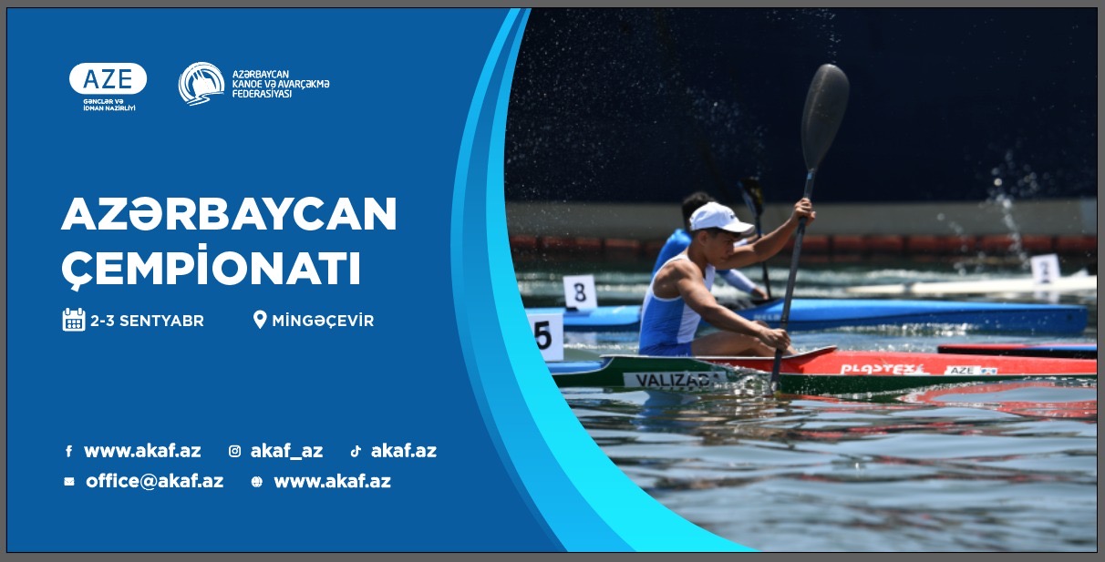 Gənclər və İdman Nazirliyi (GİN) ilə Azərbaycan Kanoe və Avarçəkmə Federasiyasının (AKAF) birgə təşkilatçılığı əsasında 2-3 sentyabr tarixlərində akademik avarçəkmə, kayak və kanoe üzrə Azərbaycan çempionatı keçiriləcək. Mingəçevir şəhərində yerləşən “Kür” Olimpiya Tədris-İdman Mərkəzində təşkil olunacaq yarışda Bakı və Mingəçevirdən olan 100-dən artıq idmançı mübarizə aparacaq.