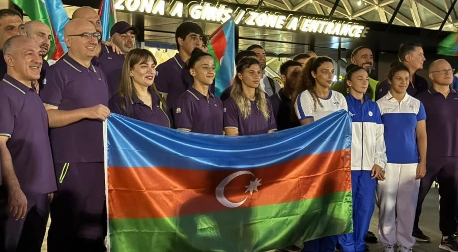 Heydər Əliyev Beynəlxalq Aeroportunda baş tutan tədbirdə gənclər və idman naziri Fərid Qayıbov, media mənsubları, azarkeşlər və idmançıların yaxınları iştirak ediblər.
