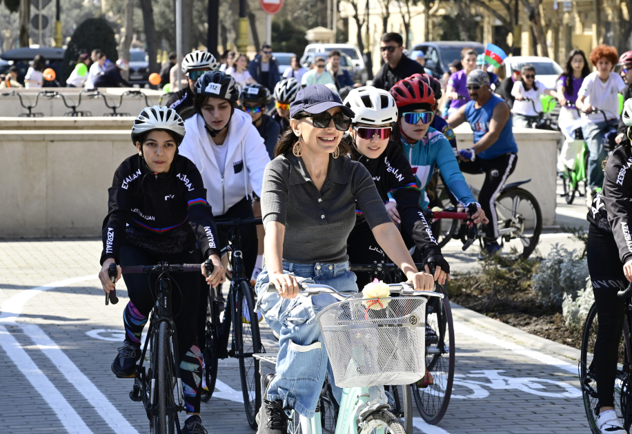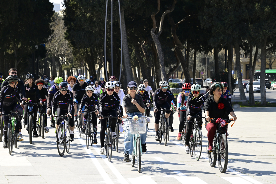 Müxtəlif sahələrdə çalışan xanımların iştirakı ilə baş tutan veloyürüş Dənizkənarı Bulvar ərazisində təşkil olunub.