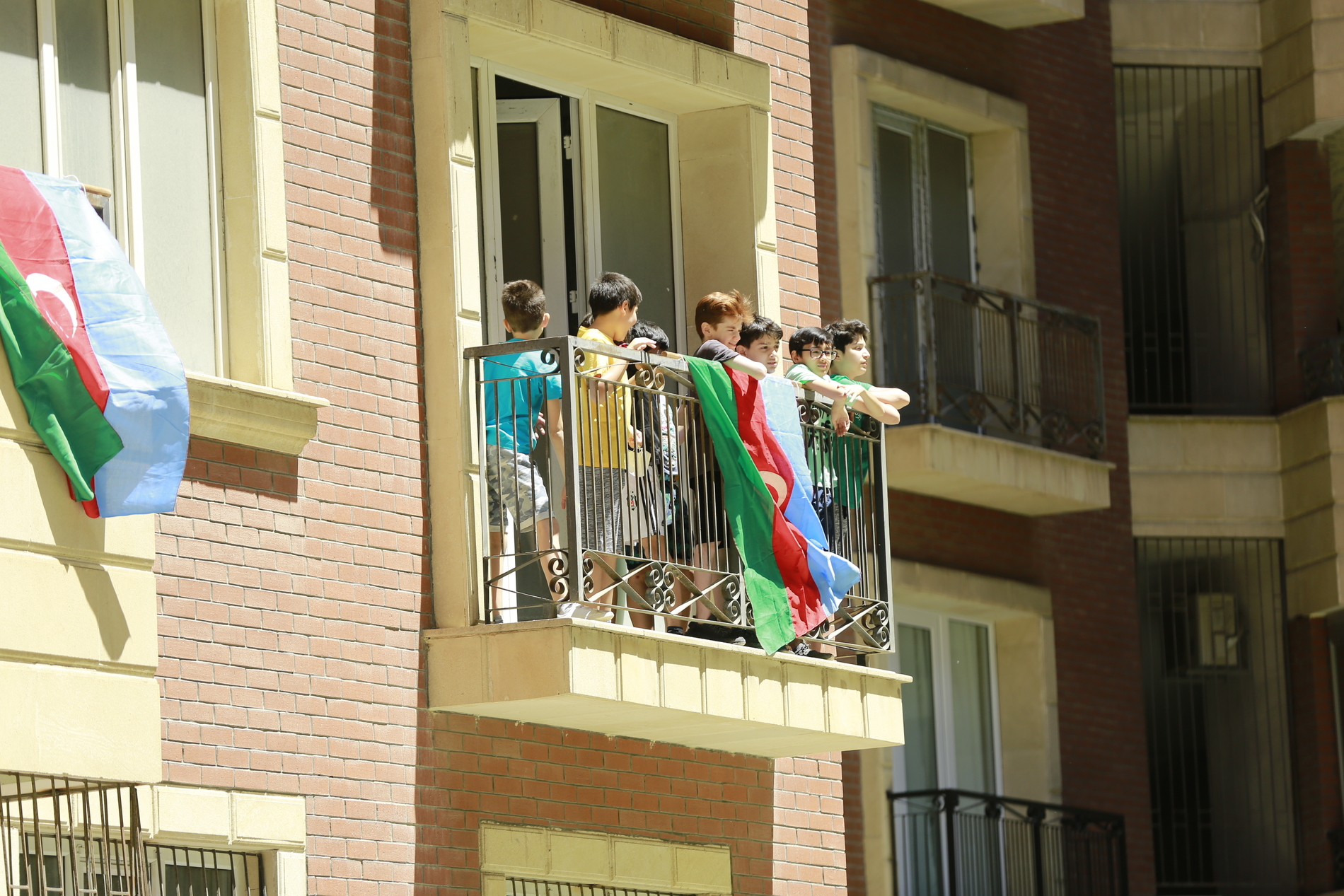 Bina sakinləri əhəmiyyətli tarixi birgə qeyd etmək üçün eyvanlardan öz dəstəklərini əsirgəməyiblər.