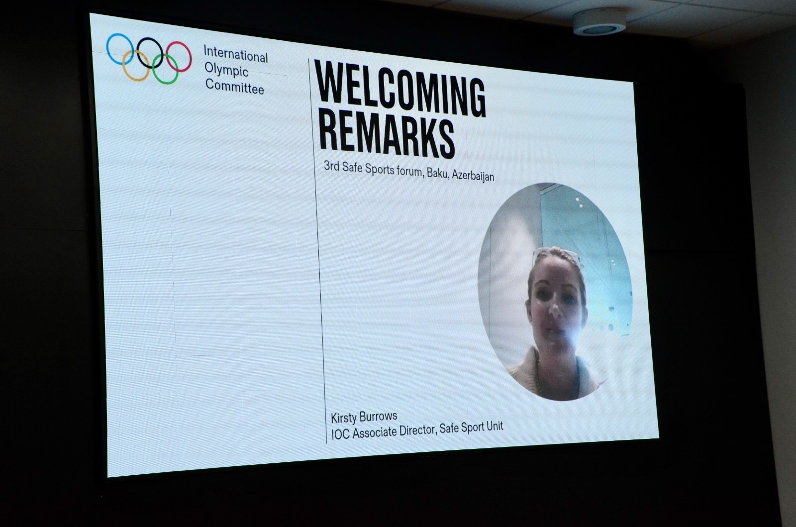 Forumda Beynəlxalq Olimpiya Komitəsinin Təhlükəsiz İdman bölməsinin direktoru Kirsti Burovsun video çıxışı təqdim edilib. O, çıxışında Təhlükəsiz İdman mədəniyyətinin beynəlxalq inkişafı, tərəfdaşların birgə fəaliyyəti və gələcək çağırışlar barədə fikirlərini bölüşüb.