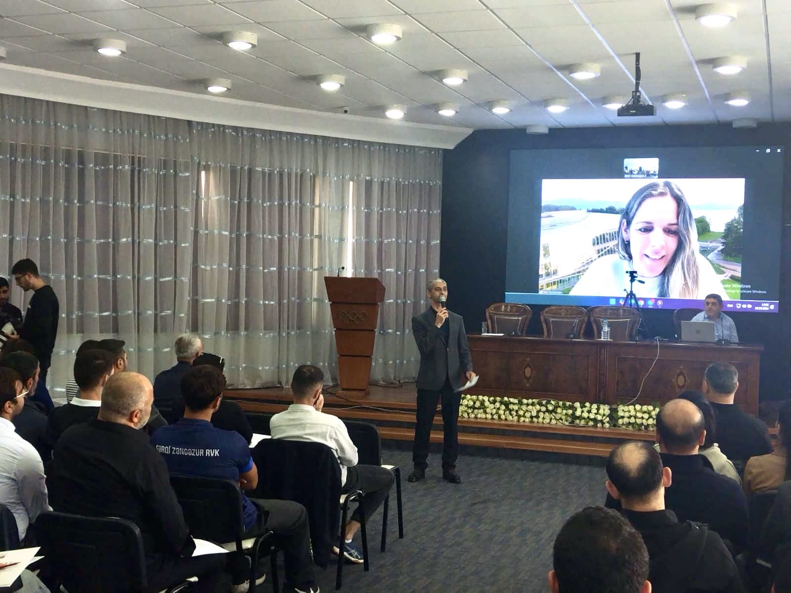 Çıxışlar başa çatdıqdan sonra xanım Vetommennlə video-bağlantı yaradılıb. O, tədbir iştirakçılarına Təhlükəsiz idman mövsusunda bir sıra maraqlı məlumatlar verib.