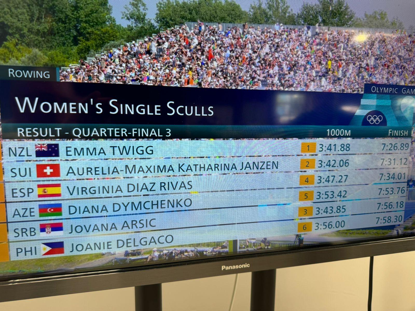 Paris-2024 Yay Olimpiya Oyunları çərçivəsində keçirilən akademik avarçəkmə üzrə yarışlar davam edir. Bu gün akademik avarçəkənimiz Diana Dimçemko 1/4 final mərhələsində mübarizə aparıb. Təmsilçimiz 2000 metr məsafəyə fərdi yarışlarda çıxış edib. Finişə 7 dəqiqə 53,76 saniyəyə çatan Diana altı idmançı arasında dördüncü yeri tutub. Olimpiyaçımız bu nəticə ilə C/D yarımfinalına yüksəlib. 1/4 final mərhələsində ilk üç yerin sahibi A/B, digər üç olimpiyaçı C/D yarımfinalına vəsiqə qazanıb.