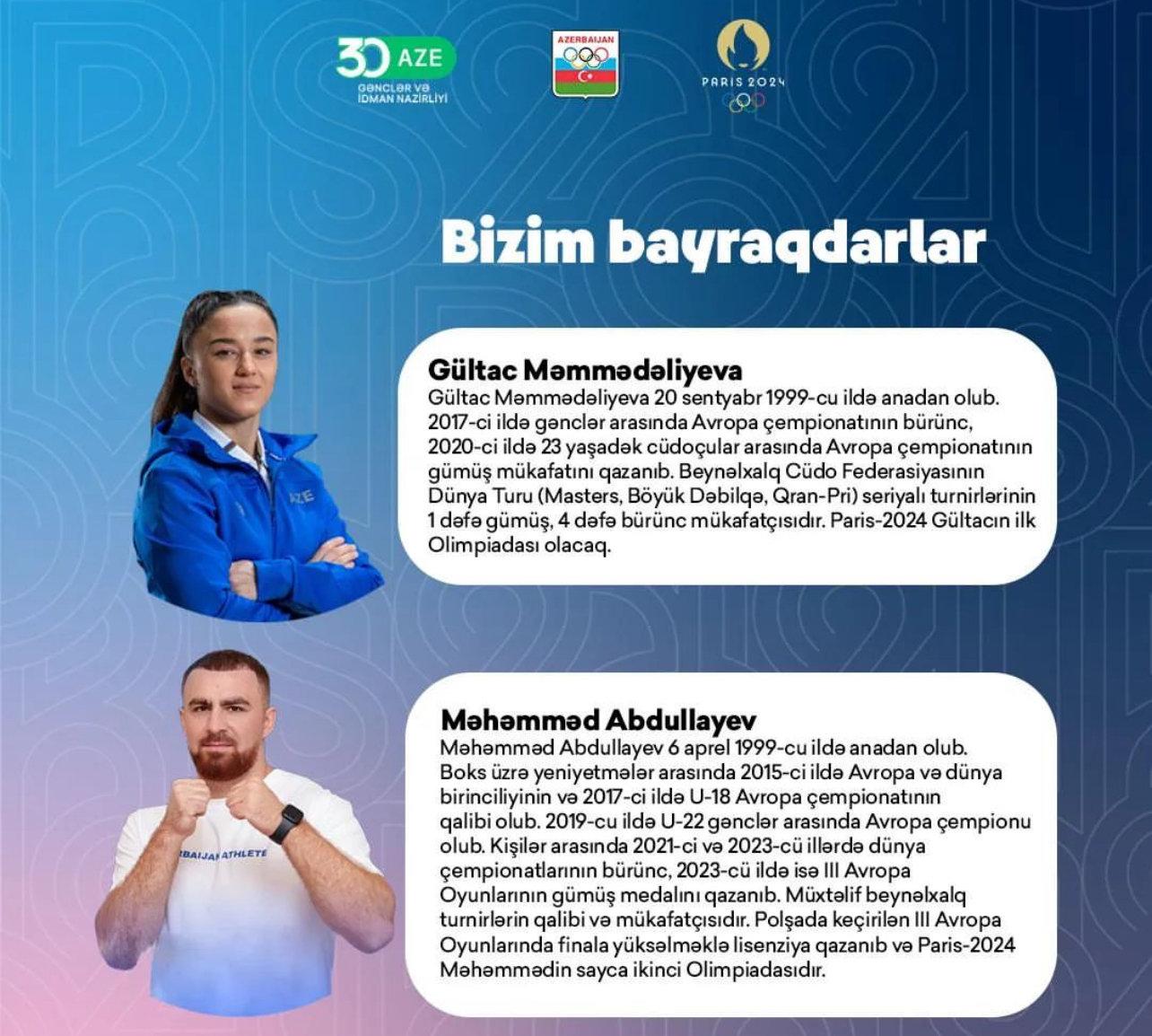Azərbaycanın “Paris-2024” Yay Olimpiya Oyunlarındakı bayraqdarları müəyyənləşib.
