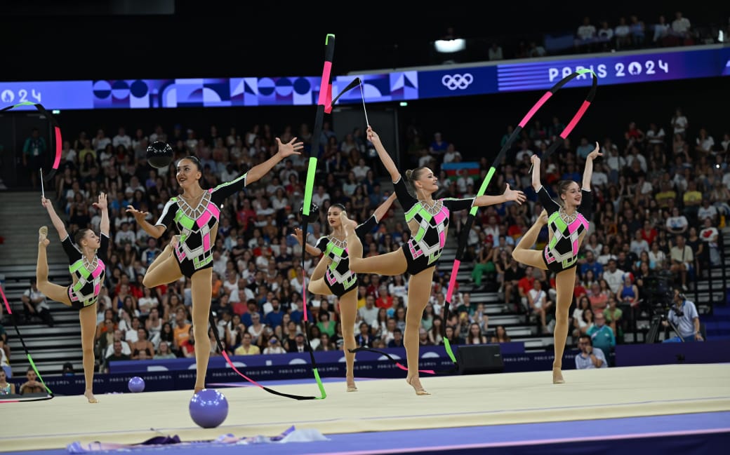 Azərbaycanın bədii gimnastika üzrə qrup hərəkətləri komandası isə bu gün Paris-2024-də final mərhələsində çıxışlarını nümayiş etdirib. Finala çıxmaqla adını dünyanın ən güclü 8 komandası sırasına yazdıran millimiz final mərhələsini 5-ci sırada başa vurub. Zeynəb Hümmətova, Darya Sorokina, Güllü Ağalarzadə, Ləman Əlimuradova və Yelizaveta Luzanın təmsil etdiyi qrup hərəkətləri komandamız 5 halqa proqramında 34.850, 3 lent və 2 top proqramında 31.600, ümumilikdə isə 66.450 xal toplayaraq bu nəticəyə nail olub. Onlar finalda mübarizə aparan Ukrayna, Özbəkistan və ev sahibi olan Fransa komandasının təmsilçilərini qabaqlayaraq sıralamada önə keçiblər. Qeyd edək ki, bu, bədii gimnastika üzrə qrup hərəkətləri komandamızın olimpiadada nümayiş etdirdiyi ən yaxşı performans olub.