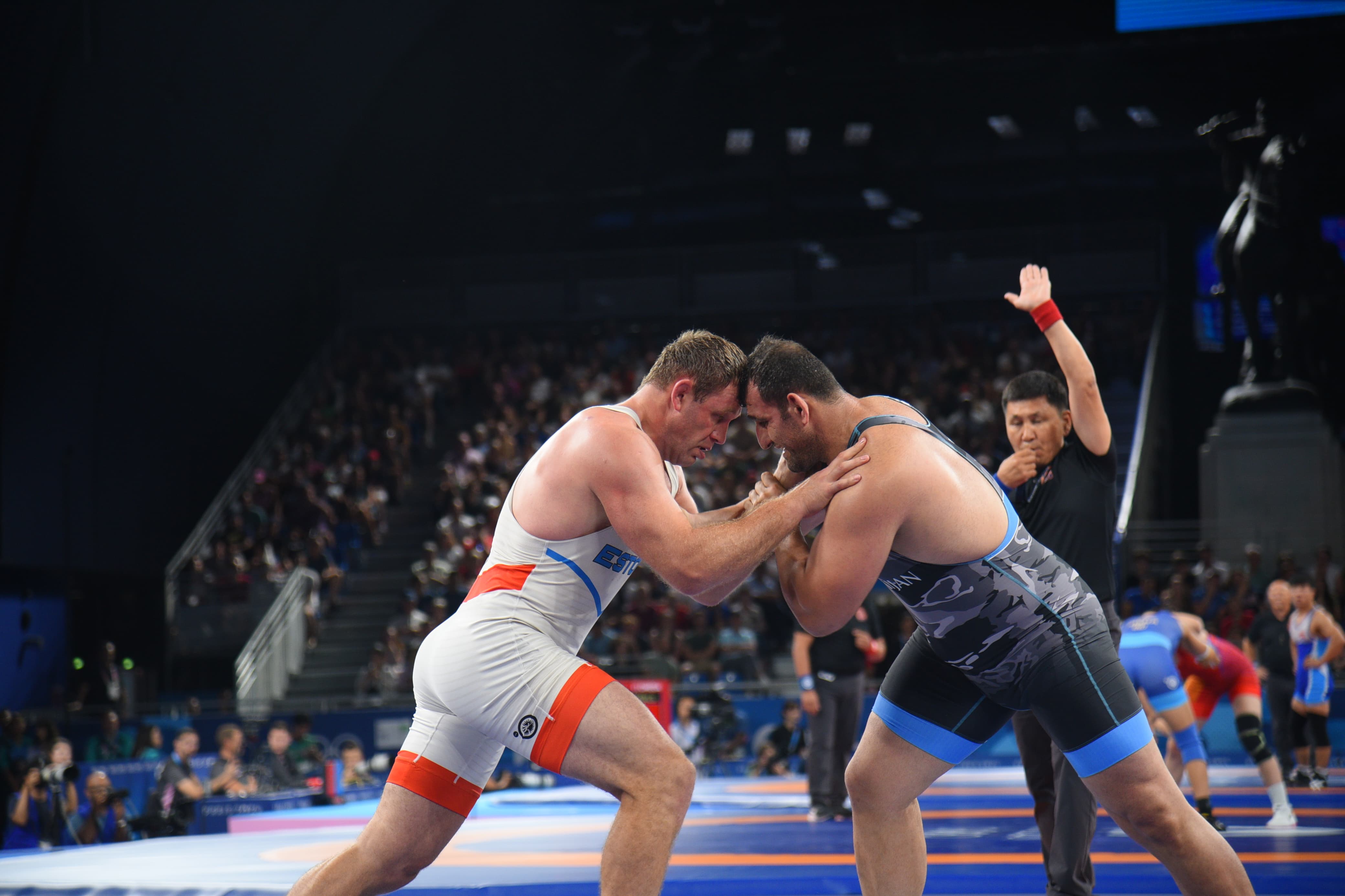 Güləş yarışlarının ilk günündə klassiklərimizidən Sabah Şəriəti xalça üzərinə çıxıb.