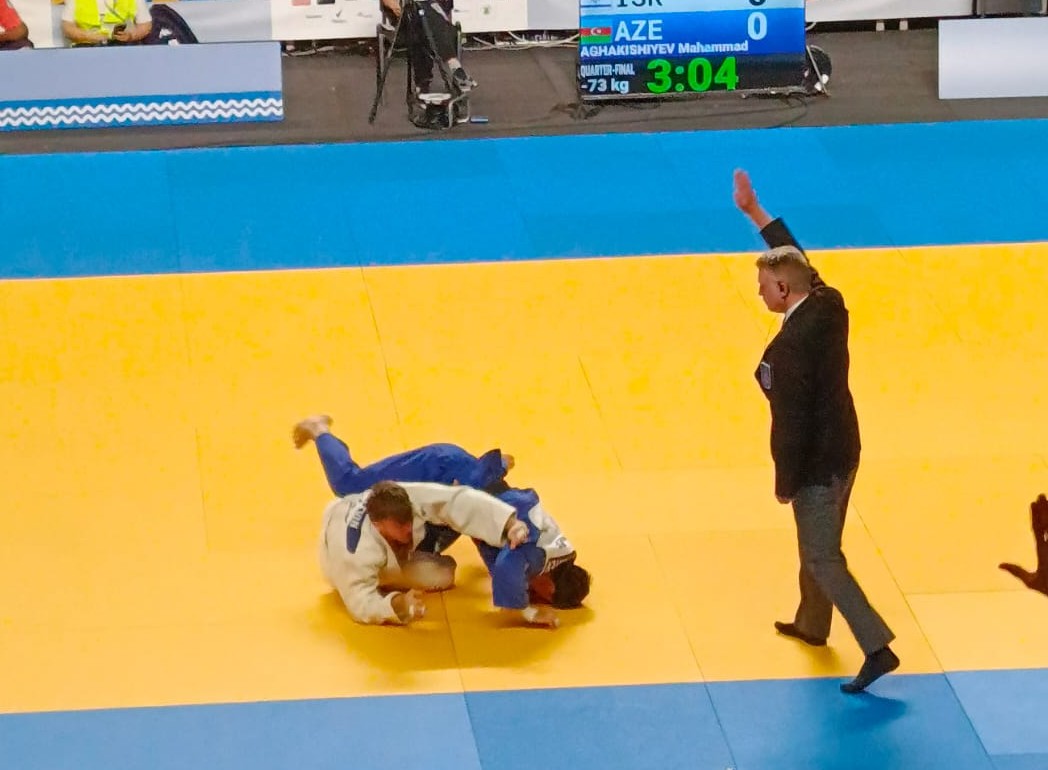 -73 kq çəki dərəcəsində mübarizə aparan cüdoçumuz 1/4 finalda israilli Şahaf Levinə ipponla qalib gəlib.