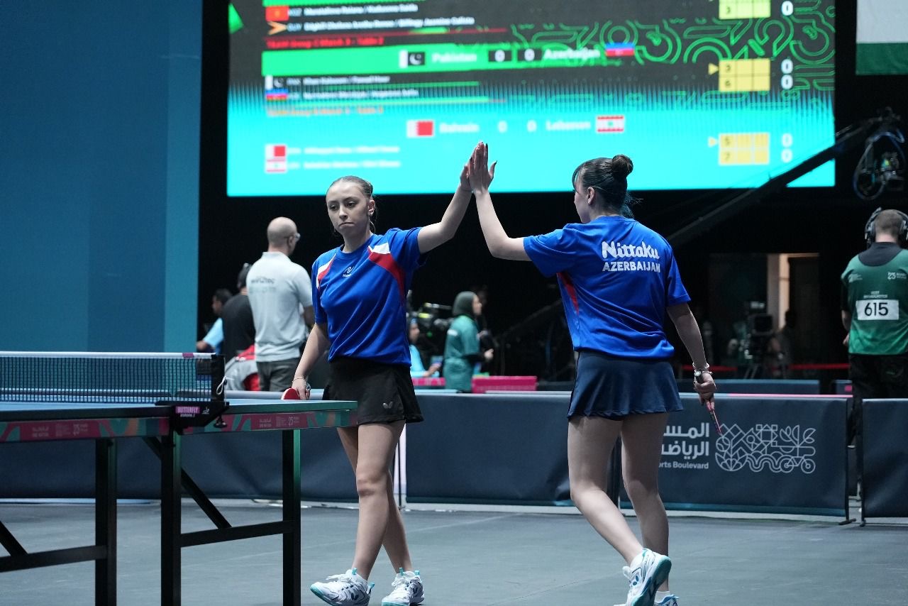 Komanda yarışlarının qrup mərhələsində Uqanda və Pakistan, 1/4 finalda isə Maldiv seçməsinə qalib gələn Mərziyyə Nurmətova, Zemfira Mikayılova və Aylin Əsgərovadan ibarət komanda bu gün yarımfinalda Misir seçməsi ilə qarşılaşıb. Görüş 8-5 hesabı ilə Afrika təmsilçisinin xeyrinə nəticələnib. Beləliklə stolüstü tennisçilərimiz komanda yarışlarını bürünc mukafatla başa vurublar.