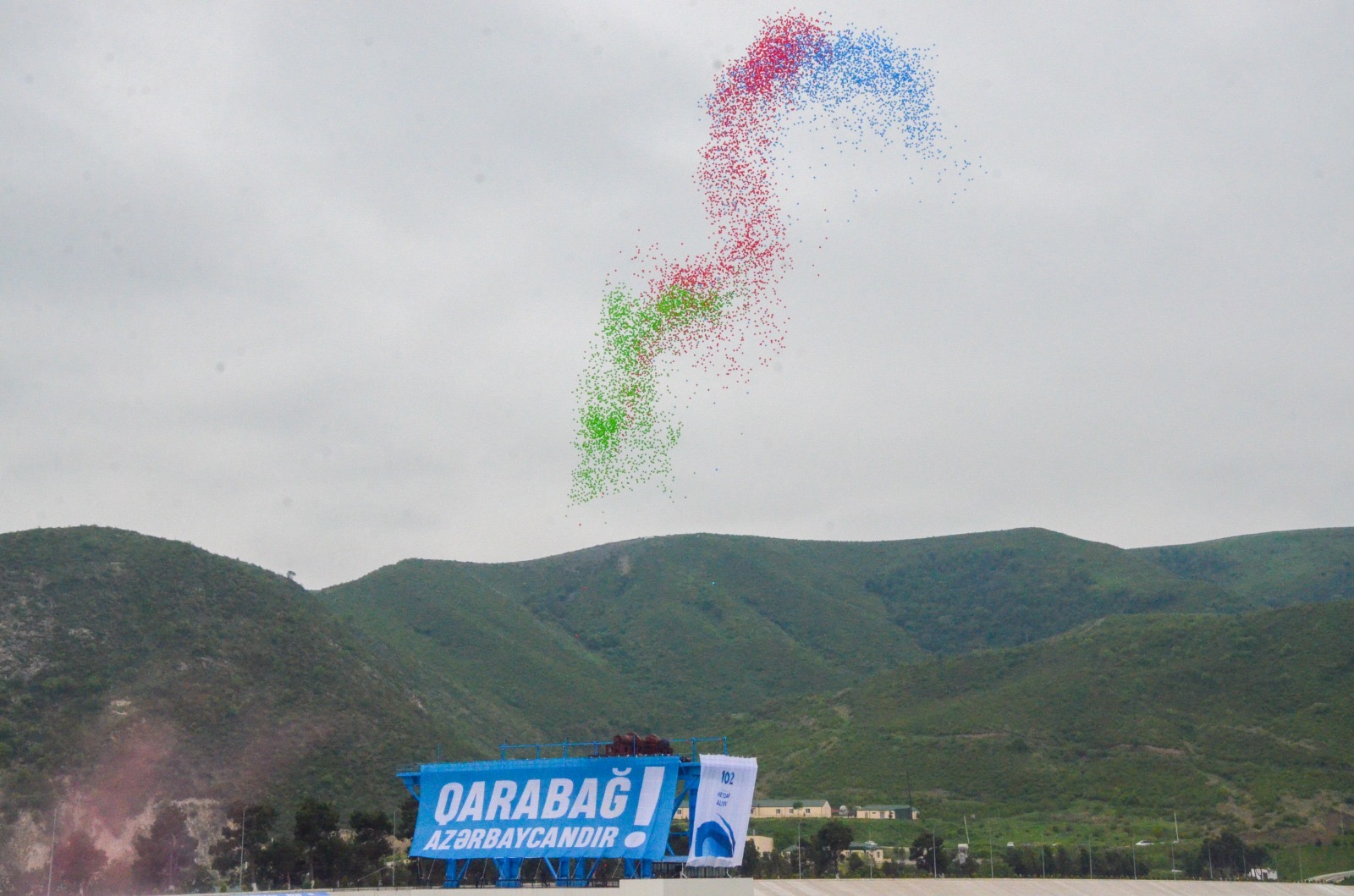 Sonra bayrağımızın rənglərini özündə əks etdirən şarlar havaya buraxılıb.