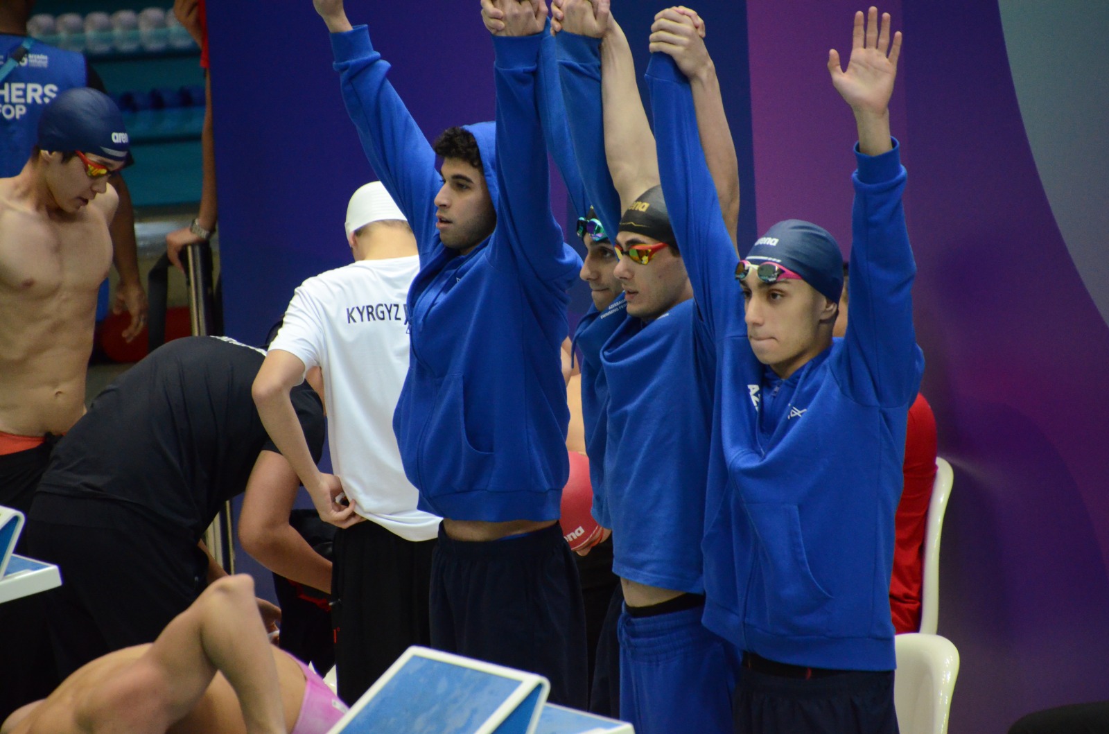 Bu gün kişilərdən ibarət komandamız 100 m sərbəst üzmə yarışlarında da mübarizə aparıb. Komandamız 3:29:21 nəticə ilə 6-cı yeri tutub. Qadınların komanda yarışlarında isə millimiz 100 m sərbəst üzmə yarışlarında 4:07:68 nəticə ilə 4-cü yerlə kifayətlənib.
