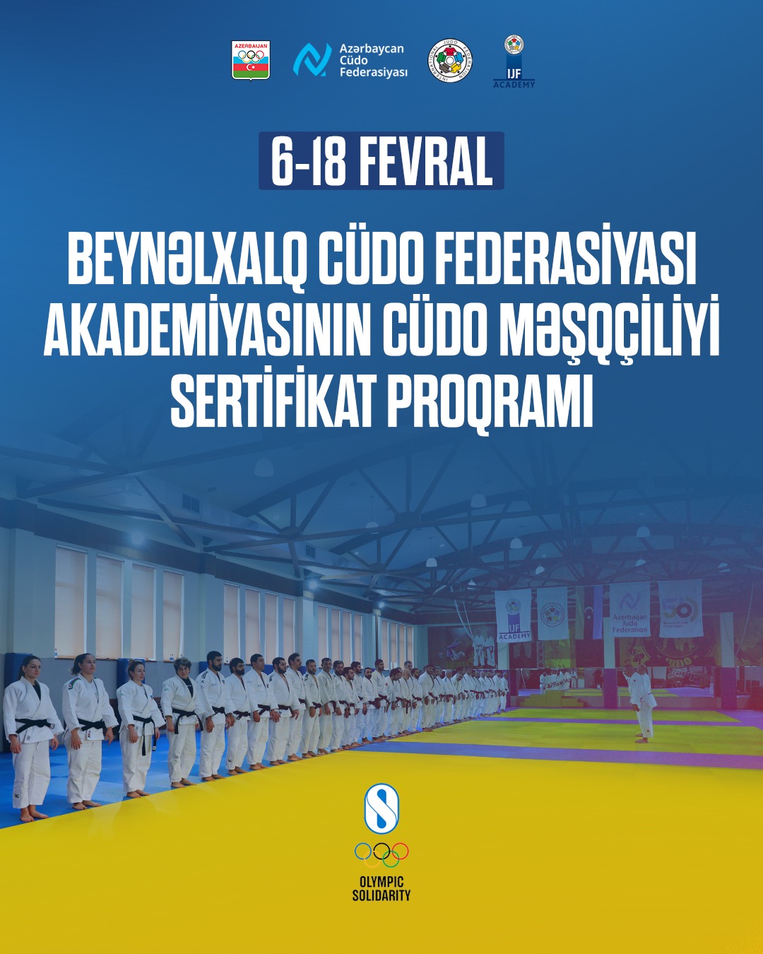 Beynəlxalq Cüdo Federasiyasının (BCF) Akademiyasının 2022-ci il mart ayından başlamış birinci səviyyə cüdo məşqçiliyi sertifikatı proqramı çərçivəsində 6-18 fevral 2023-cü ildə Bakı şəhərində yekun təlimlər keçiriləcək. Azərbaycan Respublikası Milli Olimpiya Komitəsinin (MOK) və Azərbaycan Cüdo Federasiyasının (ACF) təşkilatçılığı ilə keçiriləcək tədbirdə 79 cüdo məşqçisi imtahan verəcək.