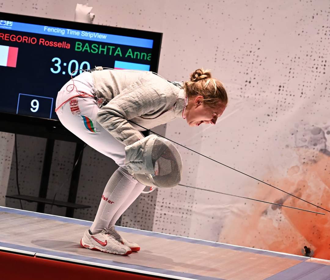 Qrup mərhələsini 5 qələbə ilə başa vuran milli komandamızın lideri Anna Başta uğurlu çıxışının davamını pley-offda da gətirib. Pley-offda keçirdiyi ilk görüşdə Rumıniya təmsilçisi Sabina Martisi 15:8 hesabı ilə məğlub edən Anna, 8-liyə yüksəlmək uğrunda keçirilən görüşdə digər təmsilçimiz Palina Kaspiaroviçə 15:14 hesabı ilə qalib gəlib. 1/4 finalda ukraynalı olimpiya çempionu Olqa Xarlanı mübarizədən kənarlaşdıran (15:14) qılıncoynadanımız yarımfinalda polşalı Suzanna Pieslara 15:6 hesabı qalıb gələrək finala yüksəlib. Həlledici görüşdə İtaliya sablyaçısı Rossella Qreqorioya 15:9 hesabı ilə qalib gələn Anna Başta Avropa çempionatının qızıl medalını qazanıb.