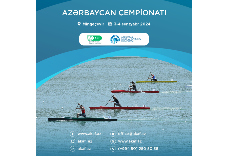 Sentyabrın 3-4-də Gənclər və İdman Nazirliyi ilə Azərbaycan Kanoe və Avarçəkmə Federasiyasının (AKAF) birgə təşkilatçılığı ilə akademik avarçəkmə, kayak və kanoe üzrə Azərbaycan çempionatı keçiriləcək.