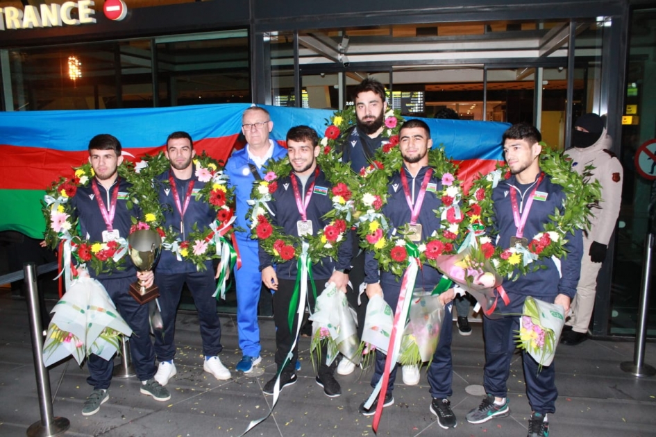 Avropa çempionatında ikinci yeri tutan Azərbaycan güləşçiləri Vətənə dönüblər