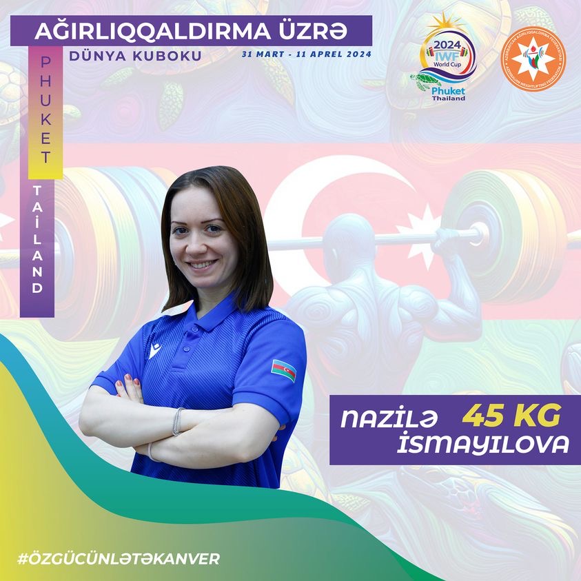 Azərbaycan millisinin üzvü Nazilə Ismayılova körpücük üzərinə qalxıb. O, 45 kiloqram çəki dərəcəsində qüvvəsini sınayıb. Atletimiz toplam 127 kiloqram (55 kişi və 72 qadın) nəticə ilə bu çəki dərəcəsində 5-ci yeri tutub.
