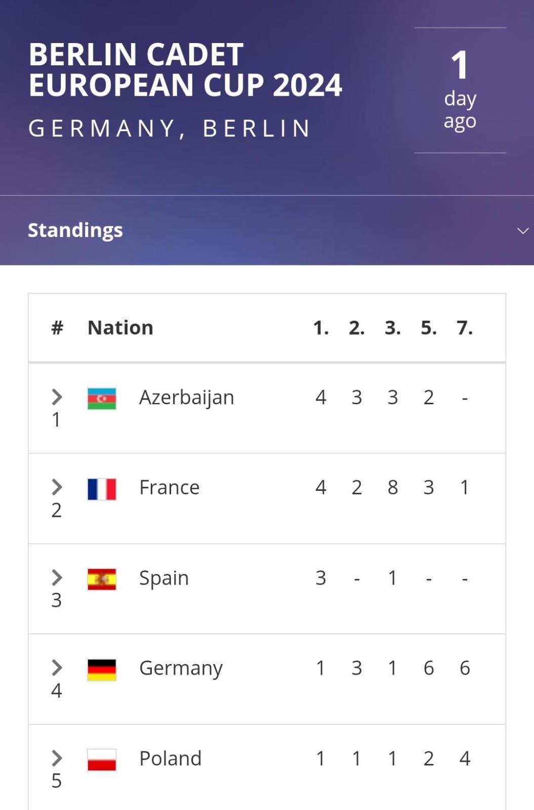 Azərbaycan Berlin Avropa Kubokunda Fransanı geridə qoyaraq birinci yerdə qərarlaşıb