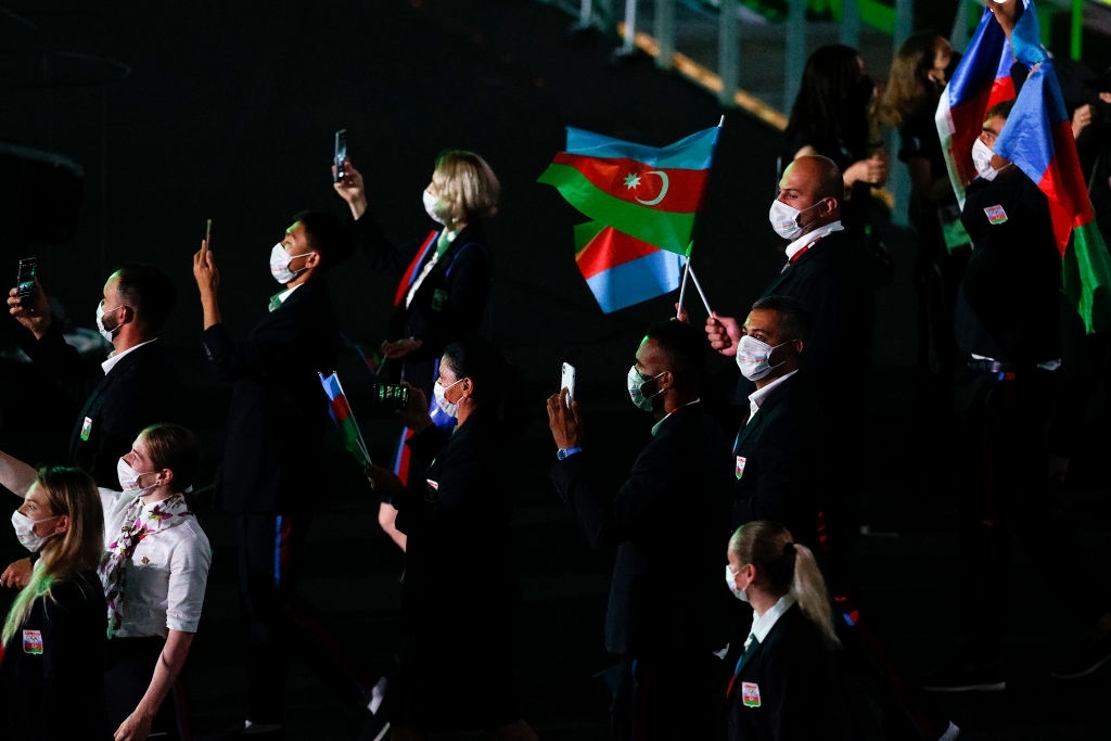 Bakı vaxtı ilə saat 15:00-da start götürən mərasimdə bayrağımızı cüdoçu Rüstəm Orucov və taekvondoçu Fəridə Əzizova daşıyıb. Paradda yığmamızın şef-de-missionu olan Fərid Mansurovla birlikdə 27 nəfərlik nümayəndə heyəti yer alıb. Komandamız açılış mərasimindən Yunanıstan, Qaçqın Olimpiya Komandası, İslandiya və İrlandiyadan sonra 5-ci keçib.