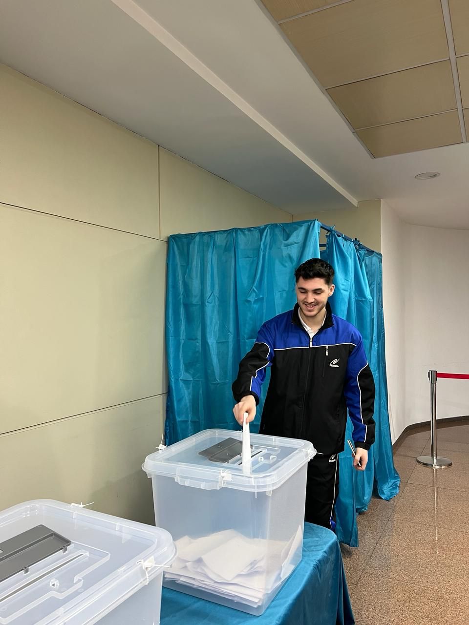 Həmçinin Qazaxıstanda təlim-məşq toplanışında olan stolüstü tennisçilərimiz də seçkilərdə fəal şəkildə iştirak ediblər. Komandamızın üzvləri Azərbaycan Respublikasının Qazaxıstan Respublikasındakı Səfirliyinin Almatı şəhərindəki Nümayəndəliyində təşkil edilən səsvermə prosesində iştirak edərək vətəndaşlıq borcunu yerinə yetiriblər.