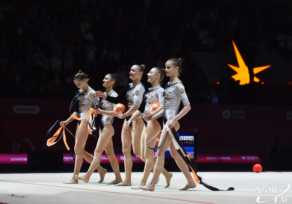 Güllü Ağalarzadə, Ləman Əlimuradova, Kamilla Əliyeva, Zeynəb Hümmətova, Yelizaveta Luzan və Darya Sorokinadan ibarət komandamız üç lent və iki topla yarışın qalibi olub. Gimnastlarımızın möhtəşəm çıxışı hakimlər tərəfindən 32,250 xalla qiymətləndirilib.