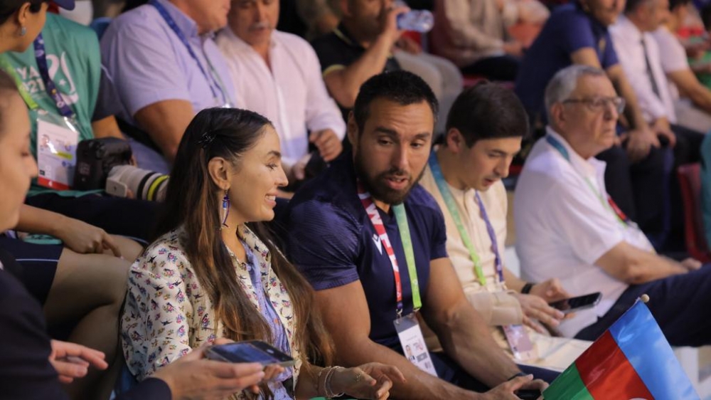 Heydər Əliyev Fondunun vitse-prezidenti Leyla Əliyeva, Milli Olimpiya Komitəsinin (MOK) vitse-prezidenti Çingiz Hüseynzadə və MOK-un baş katibi Azər Əliyev idmançılarımızın çıxışlarına baxıblar.