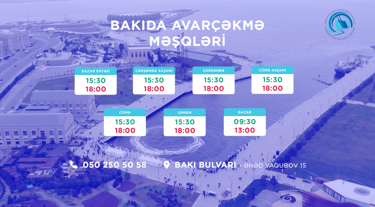 Paytaxtda avarçəkmə məşqləri Bulvar ərazisində Azərbaycan Kanoe və Avarçəkmə Federasiyasının inzibati binasının yaxlınlığında Xəzər dənizində keçirilir. Məkan Suraxanı Gəmi Muzeyi və Su İdman Sarayına da yaxın ərazidə yerləşir. Məşqlər beynəlxalq dərəcəli, əməkdar məşqçi Samir Məmmədov, respublika dərəcəli, əməkdar məşqçi İlham Qafarov, birinci dərəcəli məşqçi Larisa Axundova və beynəlxalq sertifikatlı Viktor Ozerov tərəfindən aparılır. Məşq saatları bazar ertəsi, çərşənbə axşamı, çərşənbə, cümə axşamı, cümə və şənbə günləri saat 15:30-dan 18:00-a qədər. Bazar günü isə səhər 9:30-dan 13:00-a qədər keçirilir. Qeyd edək ki, məşqlər uşaq və yeniyetmələr üçün ödənişsizdir.