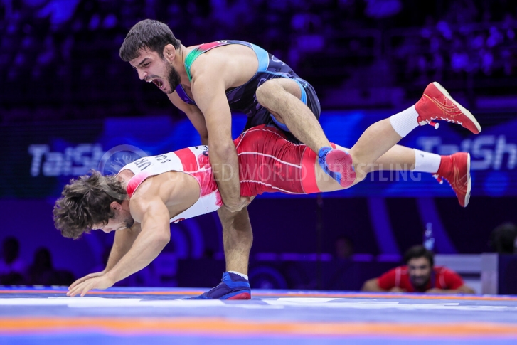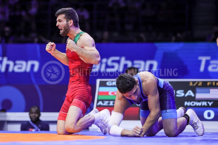 Eldəniz Əzizli (55 kq) 1/8 finalda italiyalı Covanni Freniyə ilk hissədə tam üstünlüklə qalib gəlib - 8:0. Dünya və Avropa çempionu 1/4 finalda yaponiyalı Şiotani Yuya aman verməyib - 10:0. Eldəniz yarımfinalda amerikalı Maks Nouriyə heç bir şans tanımayıb. Rəqibini 9:0 hesabıyla xalçadan məyus yola salan Əzizli 4 illik fasilədən sonra finala yüksəlib. Titullu güləşçimiz həlledici görüşdə son Avropa çempionatının finalında məğlub etdiyi gürcüstanlı Nuqzari Tsurtsumiayla qarşılaşıb. Buna qədər rəqibini 8 dəfə məğlub etmiş Eldəniz ənənəni davam etdirib və ilk hissədə tam üstünlüklə (8:0) qalib gələrək ikinci dəfə dünya çempionu olub.
