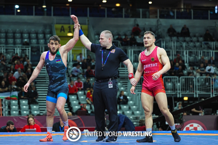 Maqomedxan Maqomedov (97 kq) 1/8 finalda italiyalı Benjamin Honisi vaxtından əvvəl məğlub edib - 12:1. Təmsilçimiz 1/4 finalda isveçrəli Samuel Şerrə də eyni aqibəti yaşadıb - 11:0. Maqomedov yarımfinalda ötən il Avropa çempionatının finalında məğlub etdiyi Vladislav Baytsayevlə (Macarıstan) qarşılaşıb. Növbəti dəfə bu rəqibinə inamla (6:0) qalib gələn Maqomedov yenidən qitə birinciliyinin finalına vəsiqə qazanıb. Maqomedxan titul uğrunda gürcüstanlı Givi Matçaraşviliylə güləşib. Gərgin mübarizə şəraitində keçən görüşdə minimal fərqlə (3:4) uduzan Maqomedov gümüş medal əldə edib.