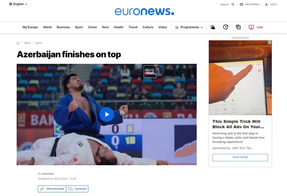 “Euronews” telekanalı Azərbaycanda keçirilən cüdo üzrə “Böyük dəbilqə” turnirinin yekunları haqqında reportaj yayımlayıb.
