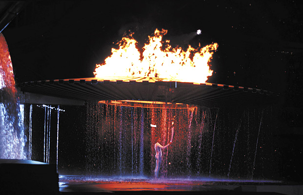 Olimpiadanın məşəlini alovlandırmaq 1996-cı il olimpiadasının çempionu Nikolaos Kaklamanakisə nəsib olub. İdmançının alovlandırdığı nəhəng borudan çıxan alov dilləri ətrafa yayılaraq möhtəşəm mübarizənin başlamasından xəbər verib.