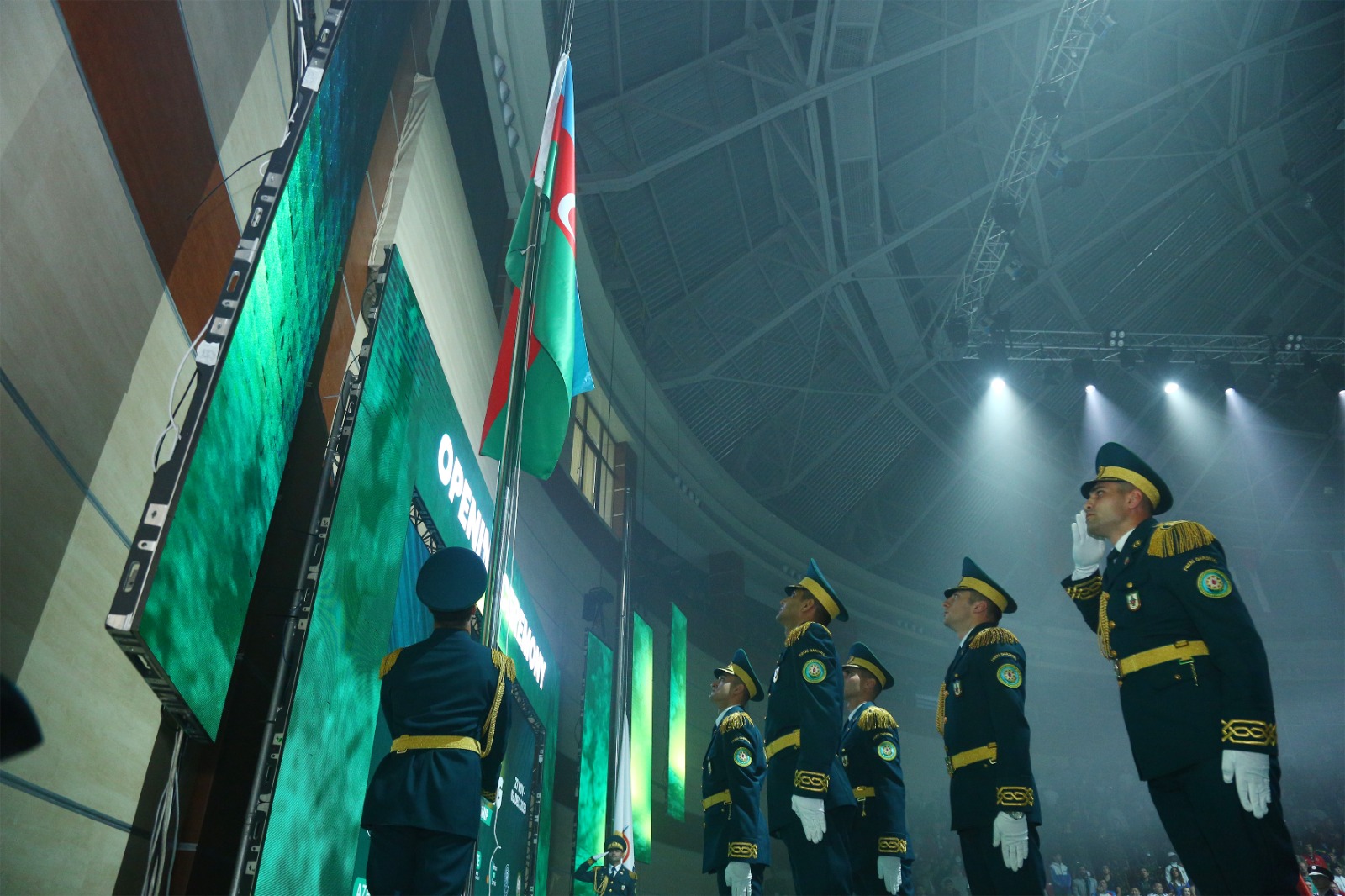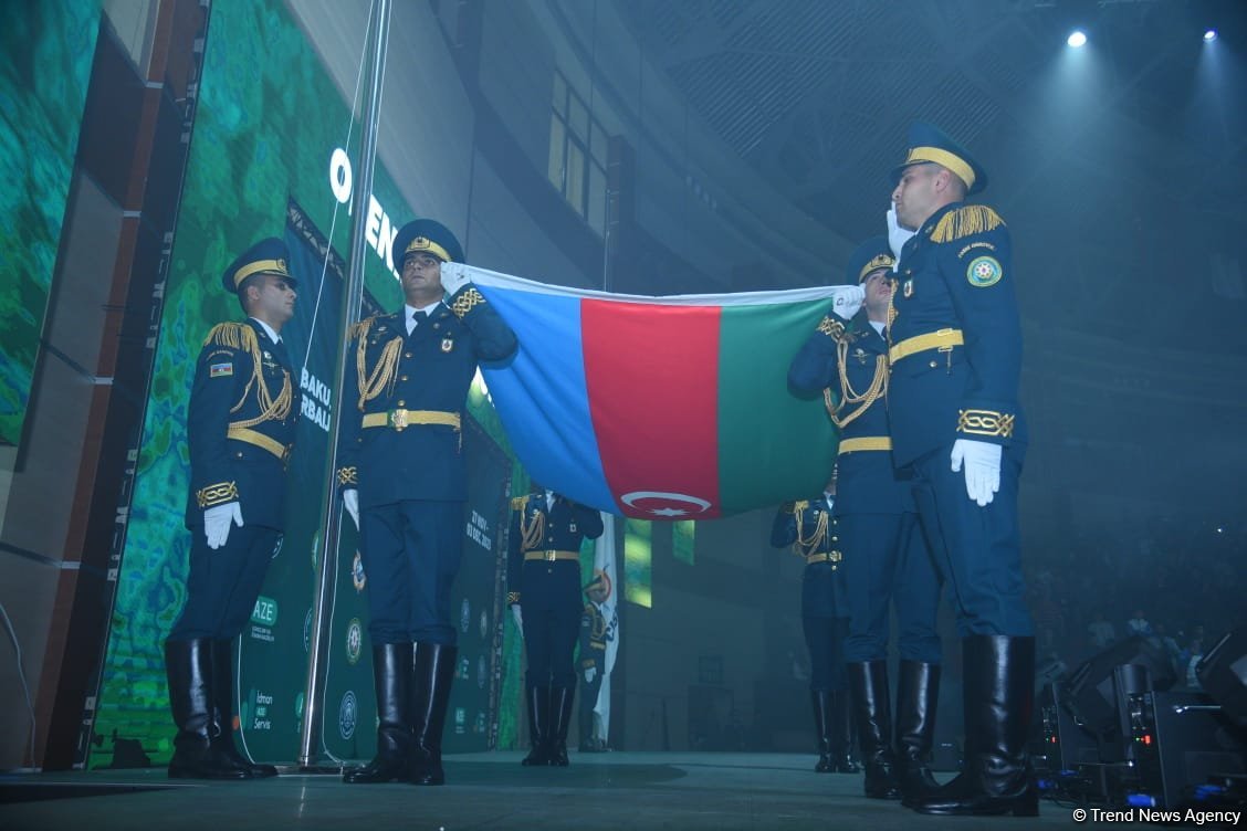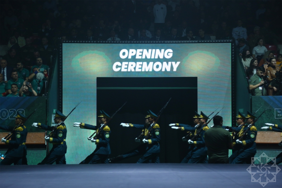 Beynəlxalq Hərbi İdman Şurasının rəhbərliyi, yüksəkrütbəli hərbçilər və beynəlxalq idman aləminin tanınmış simalarının iştirak etdiyi mərasimdə əvvəlcə hərbçilərin paradı olub.