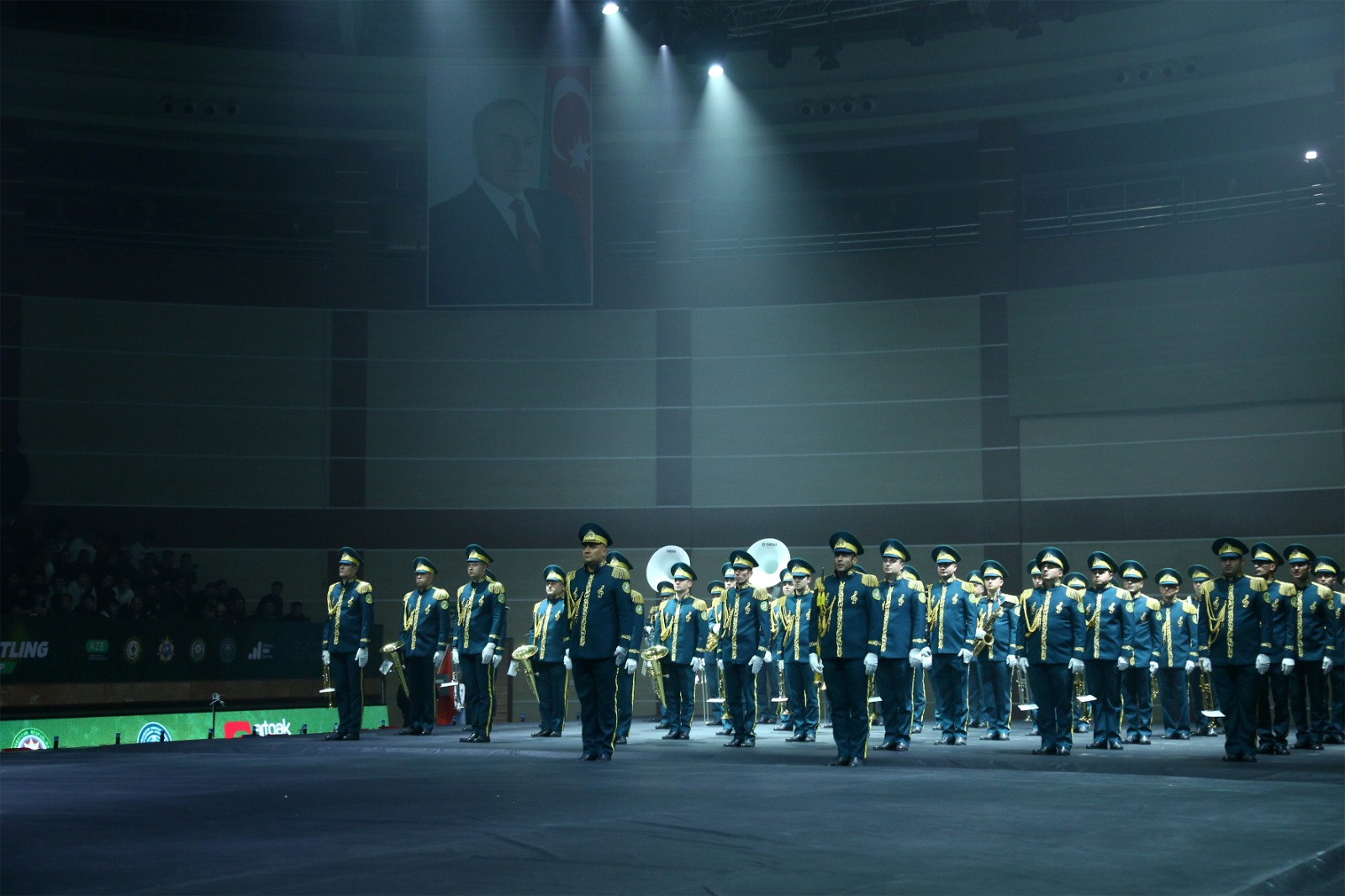 Azərbaycan Respublikasının Dövlət Bayrağı təqdim edildikdən sonra Dövlət Himni səsləndirilib, şəhidlərin əziz xatirəsi bir dəqiqəlik sükutla yad edilib.