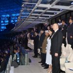 Azərbaycan bayrağı Xüsusi Dövlət Mühafizə Xidmətinin Milli Qvardiyasının hərbçiləri tərəfindən stadiona gətirilərək, dövlət himninin sədaları altında dirəyə qaldırıldı. Stadion üzərində Azərbaycan bayrağının rənglərini təcəssüm etdirən atəşfəşanlıq oldu.
