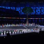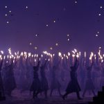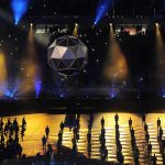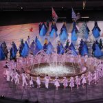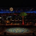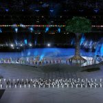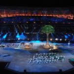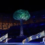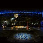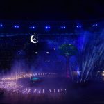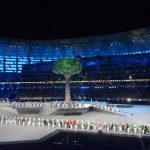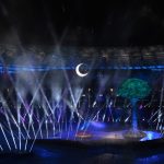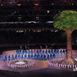 Səmada işıq saçan aypara göründü və səhnə üzərində hərəkət etdi. Aktyorlar qlobus saxlayan əlləri və sülh rəmzi olan göyərçini formalaşdırdı.