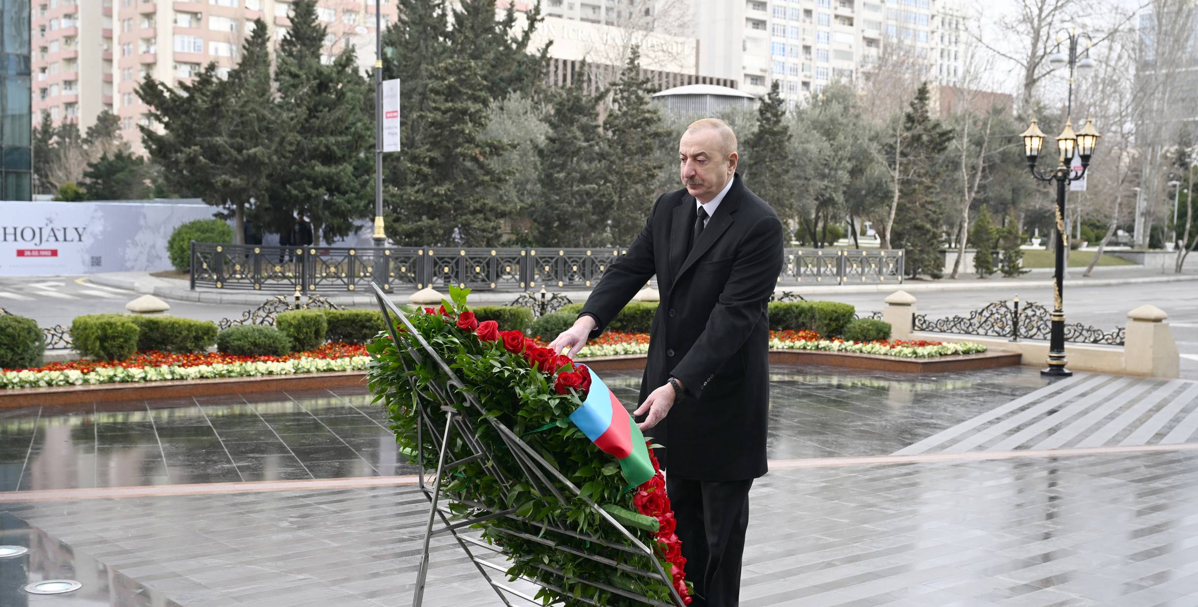 Dövlətimizin başçısı Xocalı soyqırımı abidəsinin önünə əklil qoyub, faciə qurbanlarının xatirəsini ehtiramla yad edib.