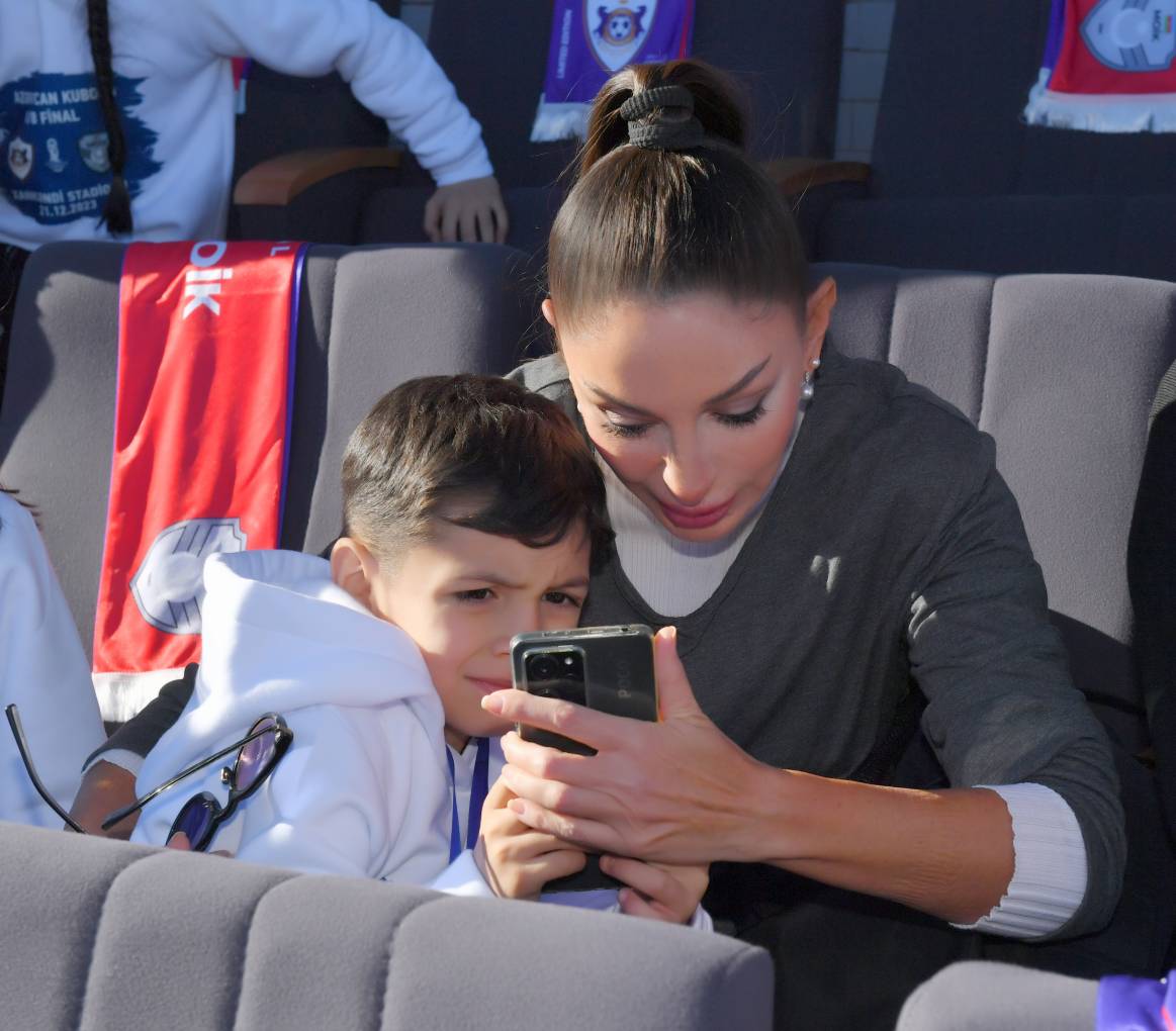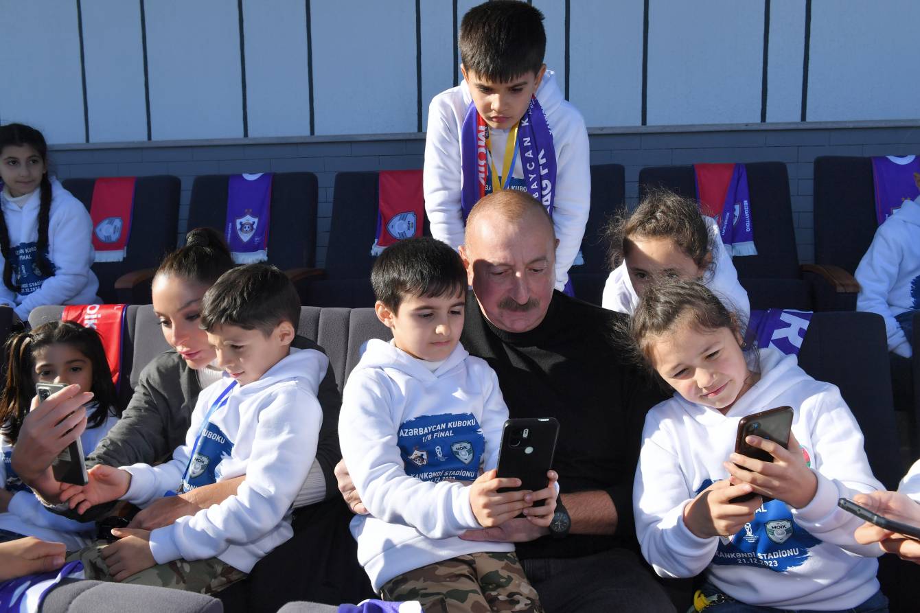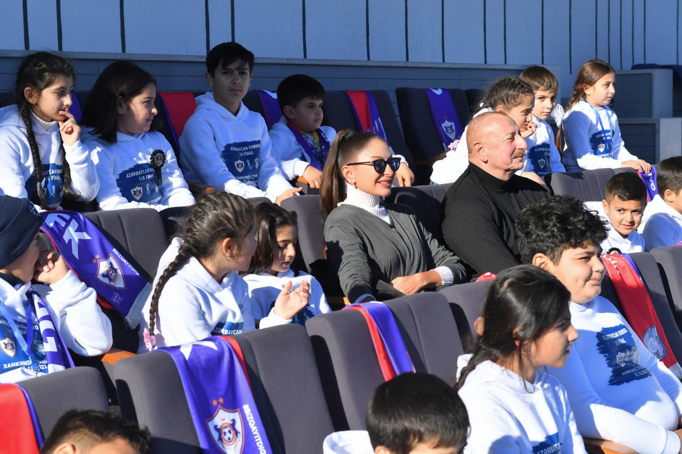 Azərbaycan Respublikasının Prezidenti İlham Əliyev və birinci xanım Mehriban Əliyeva oyuna baxmaq üçün stadiona gəliblər.