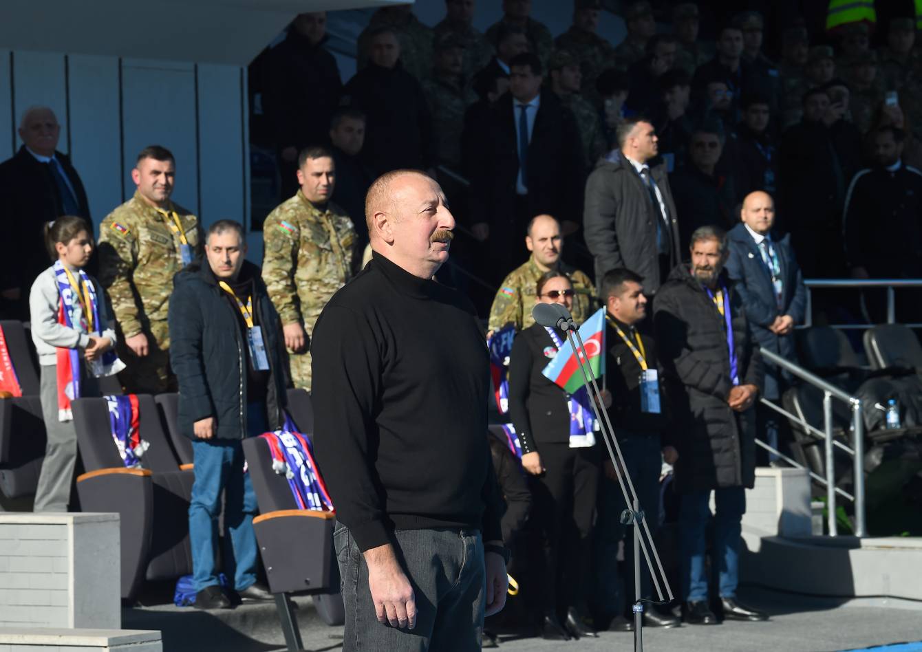 İşğal edilmiş torpaqların böyük hissəsi üç il bundan əvvəl - İkinci Qarabağ müharibəsi nəticəsində işğalçılardan azad edildi. Qarabağın tacı olan Şuşa şəhərində Azərbaycan Bayrağı qaldırıldı. Üç ay bundan əvvəl - sentyabrın 19-20-də Xankəndi, Xocalı, Əsgəran, Xocavənd, Ağdərə rayonları da işğalçılardan azad edildi. Oktyabrın 15-də bütün bu şəhərlərdə mən Azərbaycan Bayrağını ucaltdım. Noyabrın 8-də Xankəndinin mərkəzi meydanında Zəfər paradı keçirildi. Bu gün isə bu gözəl idman bayramını biz birlikdə qeyd edirik.