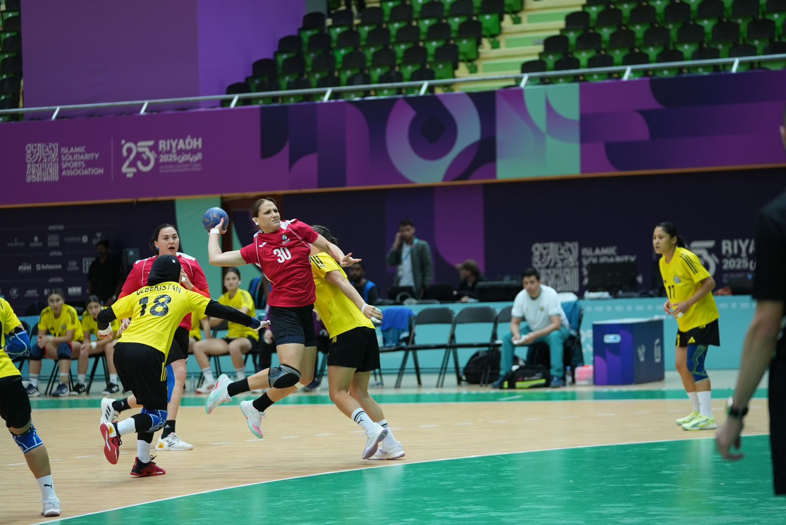 Bu gün həmçinin, həndbol yarışlarına da start verilib. Azərbaycanın həndbol millisi İslamiadada ilk oyununu Özbəkistan komandasına qarşı keçirib. Şahzadə Faysal bin Fahad adına olan Olimpiya Kompleksində keçirilən görüş Özbəkistan millisinin 28:26 hesablı qələbəsi ilə yekunlaşıb.