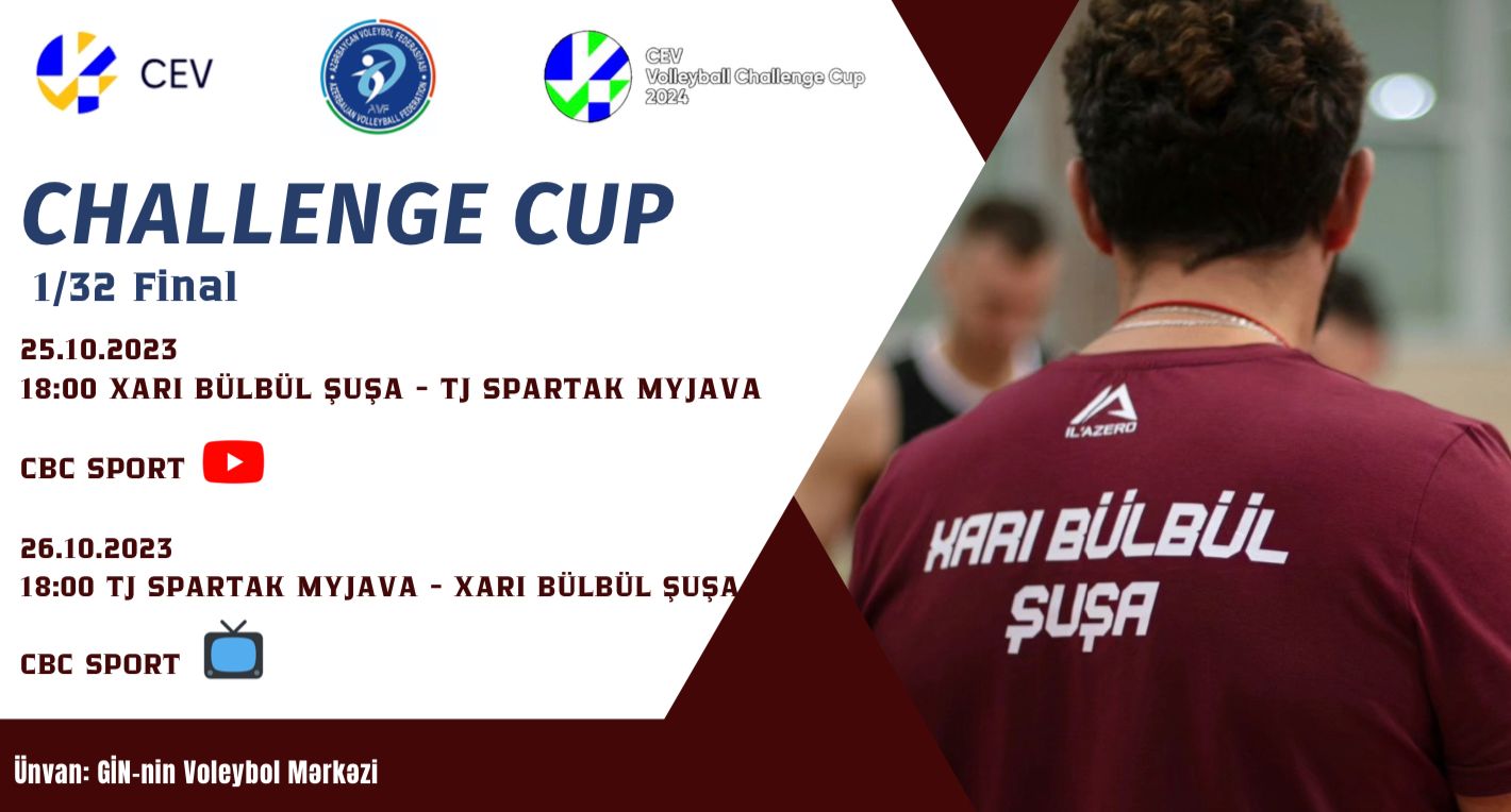 Ölkəmizi Çelenc kubokunda təmsil edən “Xarı Bülbül Şuşa” 1/32 final mərhələsində Slovakiyanın “TJ Spartak MYJAVA” komandası ilə üz-üzə gələcək. Tərəflərin qarşılıqlı razılığına əsasən hər iki oyun Bakıda keçiriləcək. Oktyabrın 25-dəki qarşılaşmada təmsilçimiz, ertəsi gün isə rəqib meydan sahibi sayılacaq. Hər iki matç GİN-in Voleybol Mərkəzində keçiriləcək və saat 18:00-da başlayacaq.