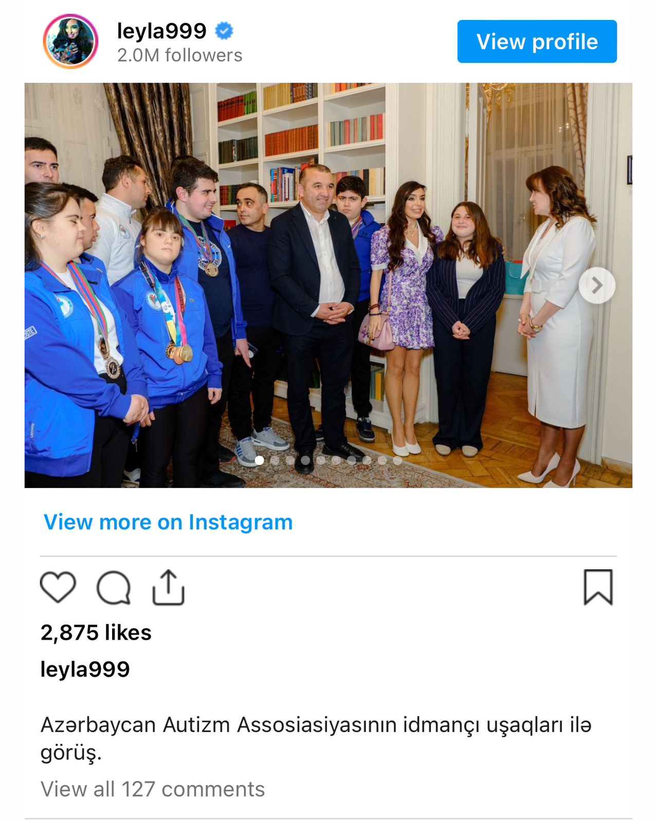 "olympic.az"ın məlumatına görə, bununla bağlı Leyla Əliyevanın instaqramdakı hesabında paylaşım edilib.
