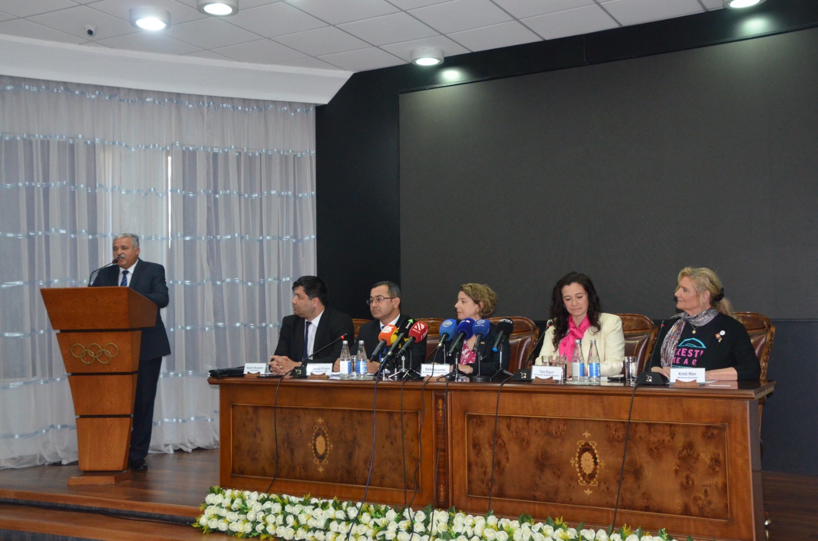Konfransda çıxış edən MOK-un idman idarəsinin müdiri Həsənağa Rzayev qonaqları salamlayaraq ABŞ-ın dövlət departamenti tərəfindən təşkil olunan səfərin ölkəmizdə güləşin inkişafı və təcrübə mübadiləsi üçün əhəmiyyətli olduğunu bildirib. O, idman vasitəsi ilə iki ölkə arasında dostluq əlaqələrinin möhkəmləndirilməsinin zəruriliyindən danışıb.