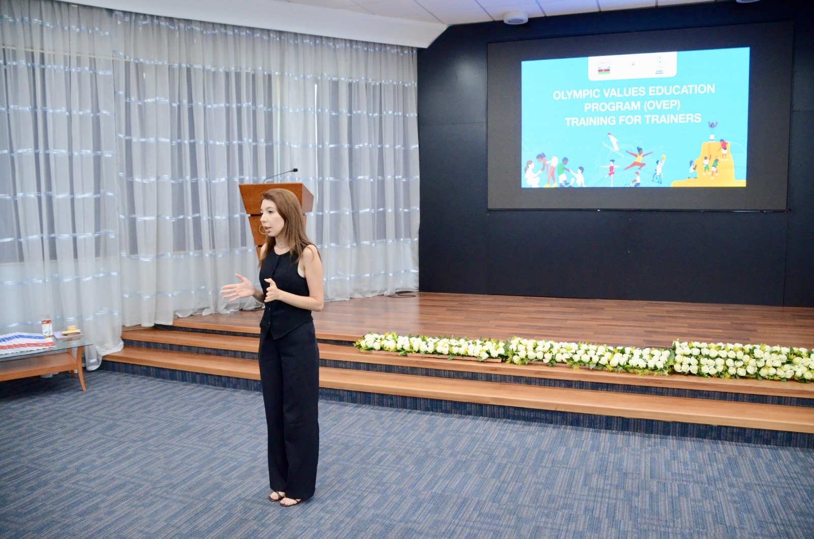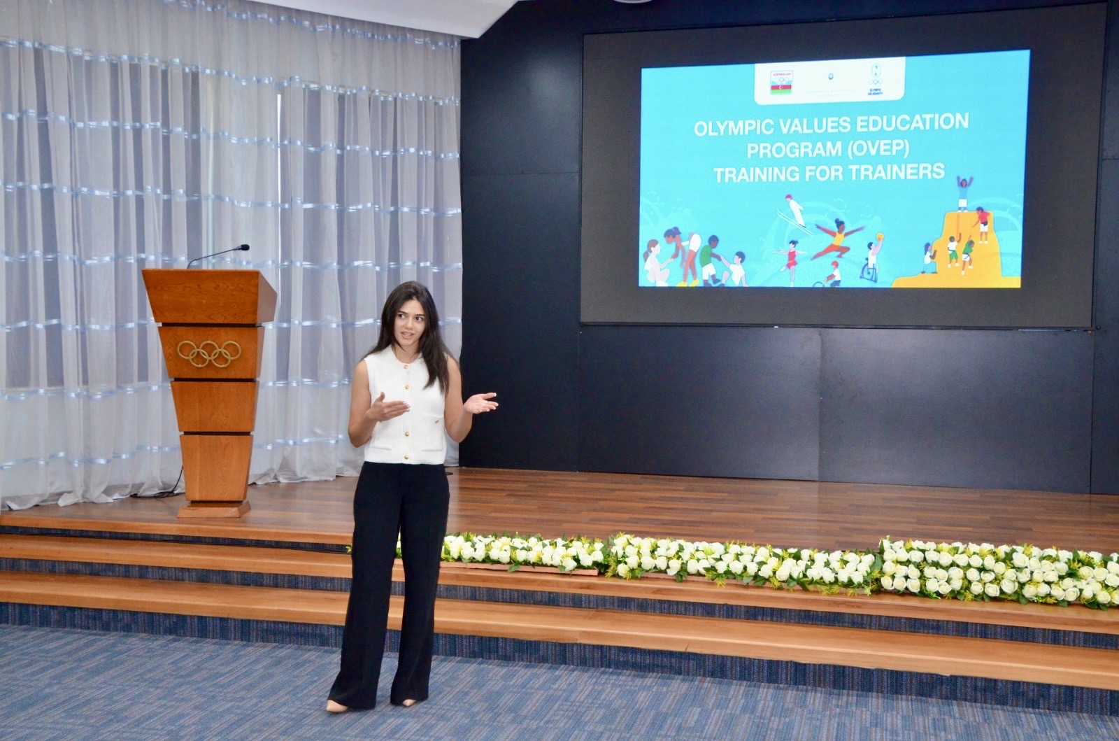 Tədbirdə çıxış edən MOK-un əməkdaşı Nərmin Kərimova Olimpiya dəyərlərinin tədrisi üzrə seçilmiş təlimçilərə OVEP layihəsinin metadologiyası və əsas komponentləri ilə bağlı geniş məlumat verib. O qeyd edib ki, sentyabr, oktyabr aylarında Milli Olimpiya Komitəsinin təşəbbüsü ilə Bakı şəhərində 11 rayon üzrə təlimlərə start veriləcək.