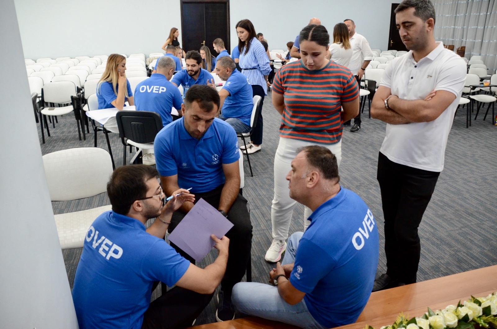 Çıxışdan sonra OVEP layihəsi çərçivəsində fiziki tərbiyə müəllimləri ilə qrup şəklində interaktiv oyunlar və müzakirələr aparılıb.