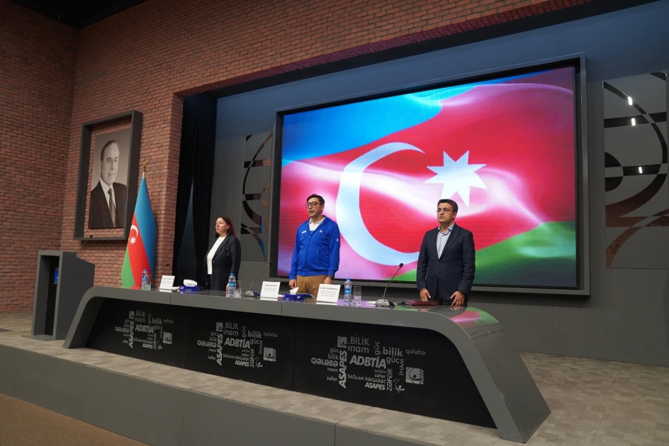 Azərbaycan Dövlət Bədən Tərbiyəsi və İdman Akademiyasında təşkil edilən görüş Dövlət Himninin səsləndirilməsi ilə başlanıb.
