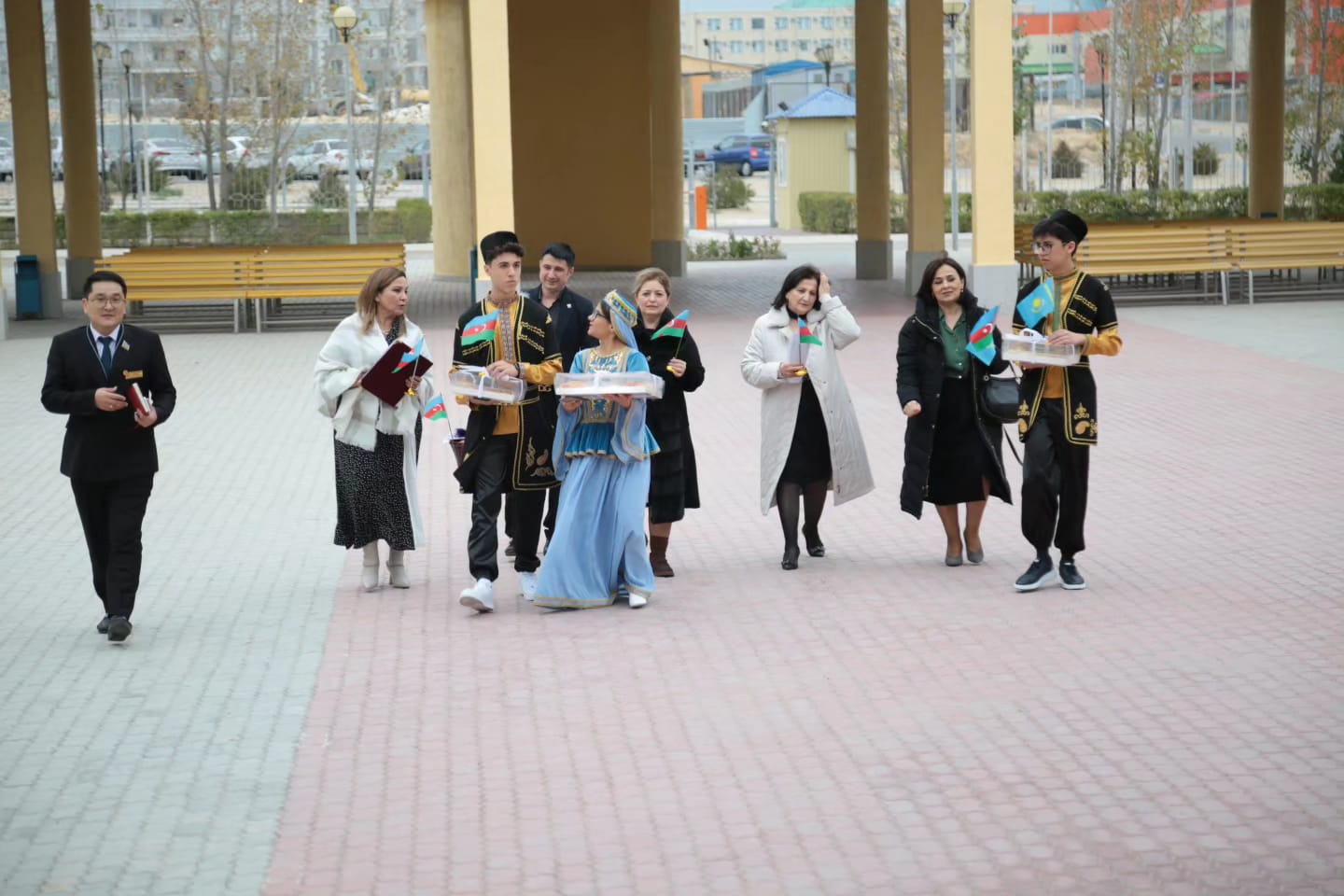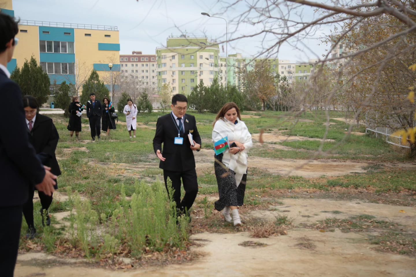 Sonra şagirdlər Nazarbayev adına Beynəlxalq İntelektual məktəbin nümayəndəsi ilə birlikdə Aktau şəhərinin Azərbaycan Konsulluğunu ziyarət ediblər. Konsul Elçin Məmmədov məktəbliləri 17 Noyabr -Milli Dirçəliş Günü münasibəti ilə təbrik edib. Səfər zamanı məktəblilərin gördükləri işlərlə bağlı müzakirələr də aparılıb.