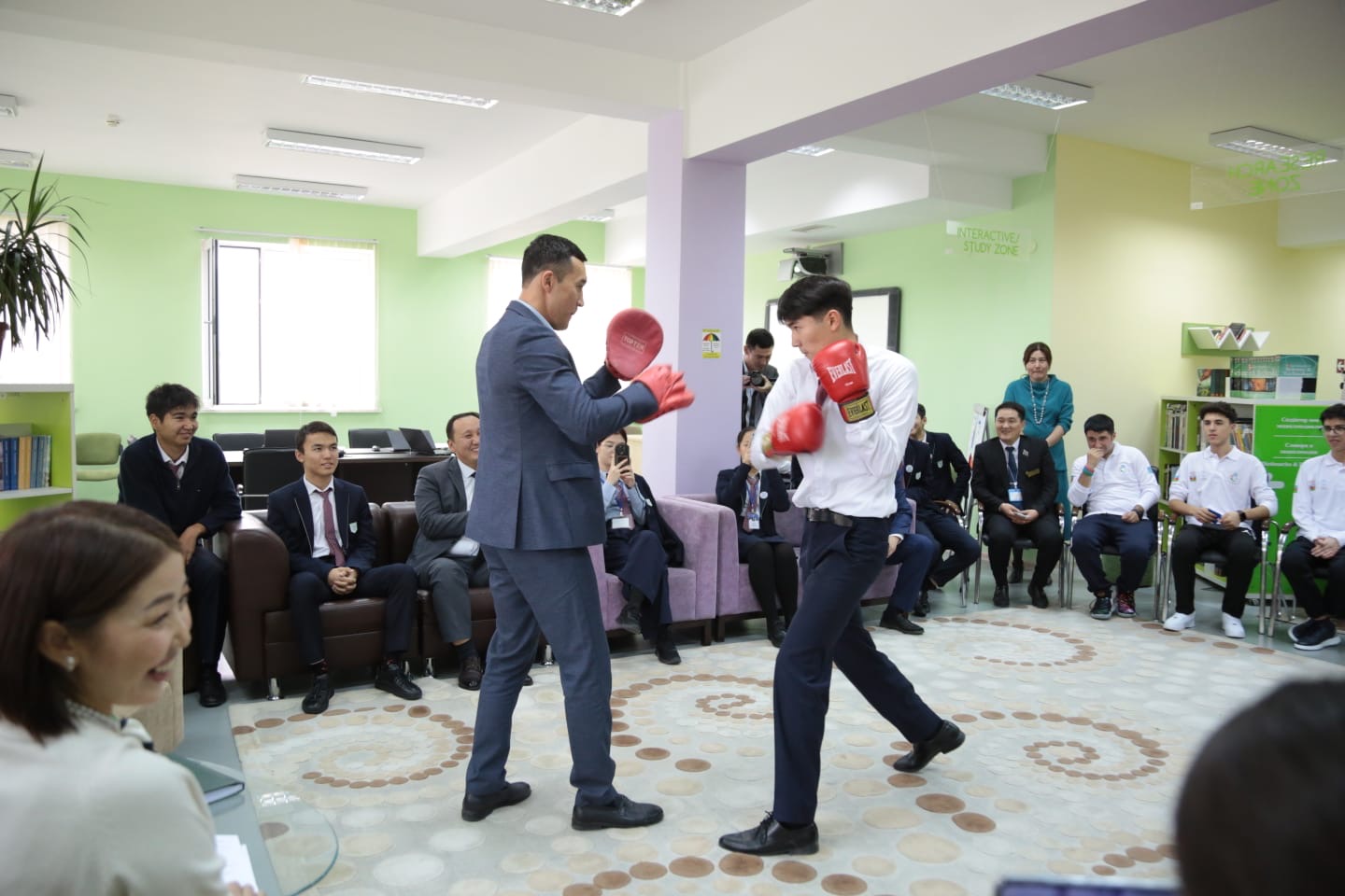 OCEP məktəbliləri daha sonra Qazaxıstanın boks üzrə London-2012 və Rio-2016 Yay Olimpiya Oyunlarının gümüş mükafatçısı, Asiya çempionu və dünya mükafatçısı Adilbek Niyazimbetovla görüşüblər. Görüş zamanı Adilbek Niyazimbetov məktəblilərin suallarını cavablandırıb.