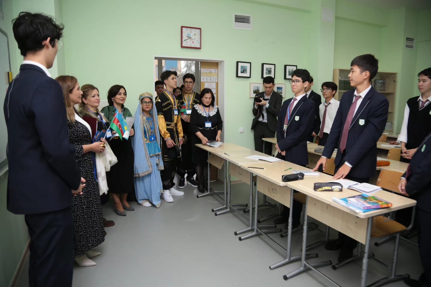 Məktəblilər Nazarbayev adına Beynəlxalq İntelektual məktəbə səfər zamanı bütün xarici dil və mədəniyyət bölməsi, idman zalı, həyətdə uşaqlar tərəfindən hazırlanmış yaşıl bağça, günəş enerjisi ilə işləyən panellər, fizika, kimya, riyaziyyat fənləri üzrə bölmələr, gələcəyin fənni hesab olunan robot texnika və informatika otağı ilə tanış olublar. Şagirdlər həmçinin burada asudə vaxtların səmərəli təşkili üçün nəzərdə tutulmuş foto və video hazırlıq otaqları və digər bölmələrlə də maraqlanıblar. Bundan başqa məktəb ətrafında şagirdlər tərəfindən tapılmış qədim əsrlərin qalıqları və Xəzər dənizi ətrafında tapılmış əl işləri də sərgi şəkilində nümaiş olunub. Məktəbin ən istedadlı məzunlarının şərəf lövhəsi və xarici ölkələrlə davam edən layihələr lövhəsi də diqqəti xüsusi olaraq cəlb edib.