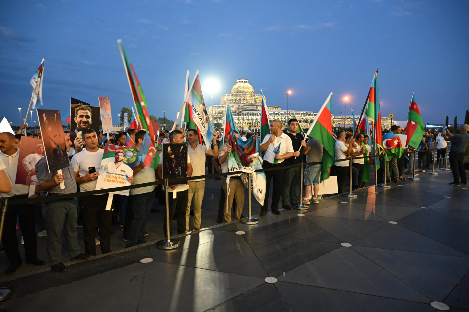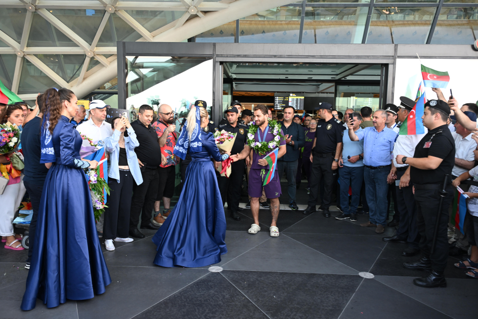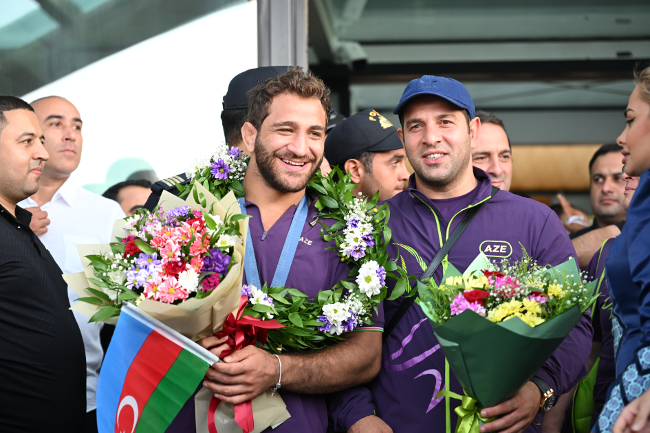 Paris-2024 Yay Olimpiya Oyunlarında qızıl medal qazanan Azərbaycan cüdoçuları Hidayət Heydərov (73 k) və Zelim Kotsoyev (100 kq) Vətənə dönüblər.