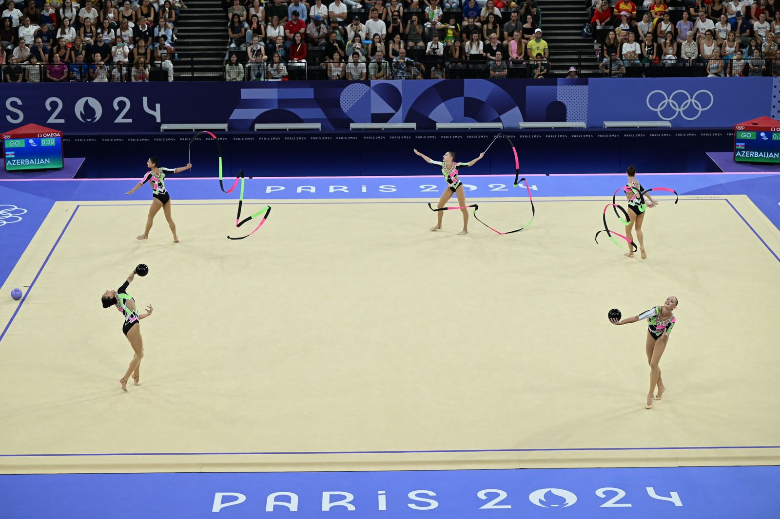 Azərbaycanın bədii gimnastika üzrə qrup hərəkətləri komandası Fransanın paytaxtı Parisdə təşkil olunan Yay Olimpiya Oyunlarında növbəti dəfə çıxış edib.