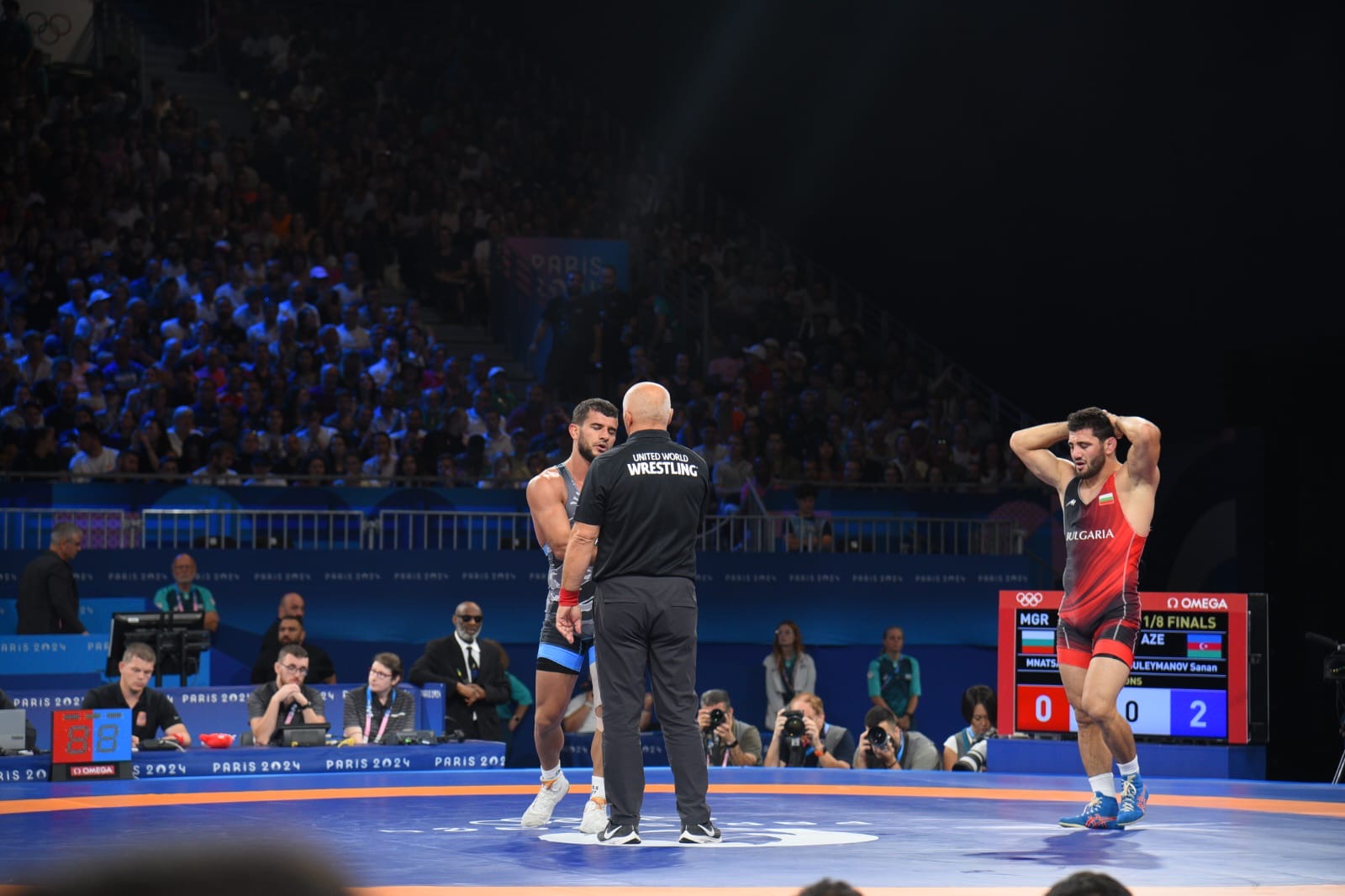 1/8 final mərhələsindən yarışlara start verən idmançımızın ilk rəqibi Bolqarıstanı təmsil edən erməni əsilli güləşçi Aik Mnatsakanyan olub.