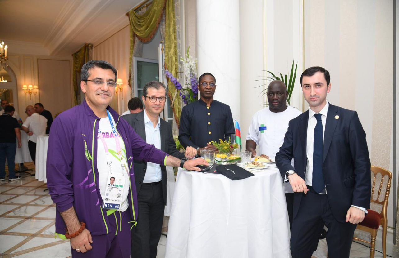“Azərbaycan Olimpiya Evi”ndə Milli Olimpiya Komitələrinin nümayəndələri, beynəlxalq idman federasiyalarının rəhbərləri və idmançılarla yaddaqalan görüşlər keçirilib. Bu görüşlərdə Gənclər və idman naziri Fərid Qayıbov, MOK-un vitse-prezidenti Çingiz Hüseynzadə, Azərbaycanın Rəqəmsal İnkişaf və Nəqliyyat naziri, Azərbaycan Cüdo Federasiyasının prezidenti Rəşad Nəbiyev, MOK-un baş katibi Azər Əliyev, Gənclər və İdman nazirinin müavini Mariana Vasileva, Azərbaycanın Fransadakı Səfiri Leyla Abdullayeva, Avropa Olimpiya Komitələrinin (AOK) baş katibi Rafael Paqnozzi, Dünya Güləş Birliyinin prezidenti Nenad Laloviç və bir çox başqa rəsmi qonaqlar, eyni zamanda Olimpiya çempionlarımız Hidayət Heydərov və Zelim Kotsoyev də iştirak ediblər.